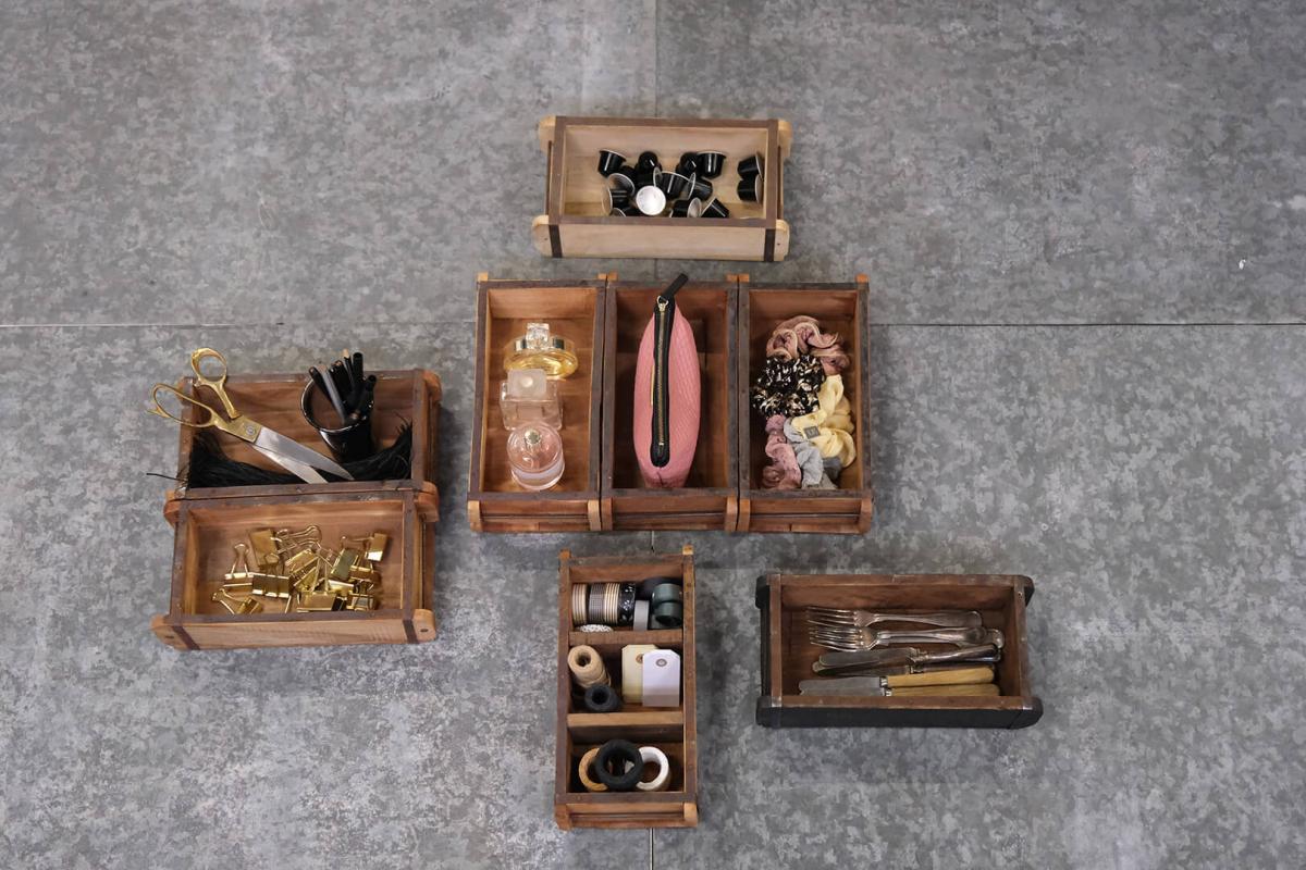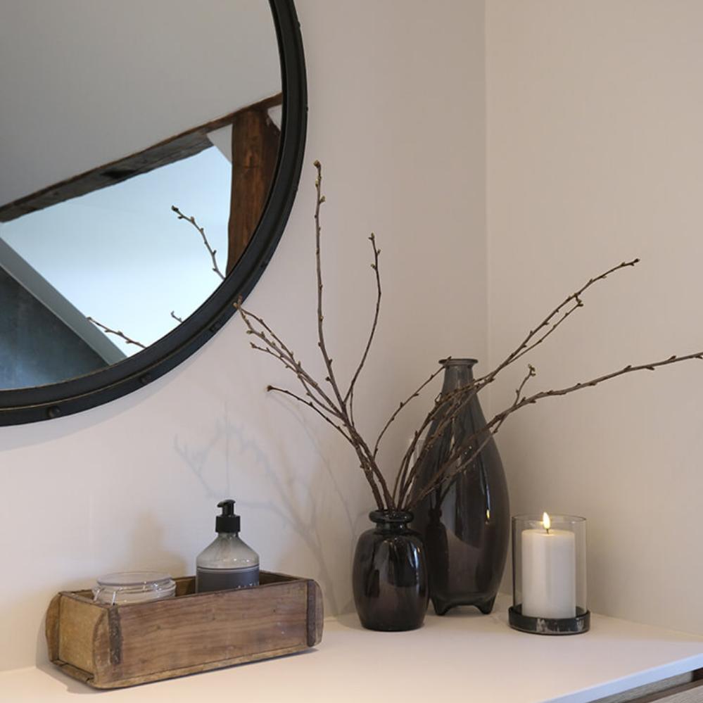 Murstensforme med patina i genanvendt træ, som passer perfekt ind i alle hjem med en rustik stil. De dekorative forme passer fint ind på badeværelset til make-up eller sæbe, i køkkenet til olier eller friske krydderier, i stuen til lys eller strikketøj eller måske et sted hvor du mangler en rustik opbevaring.