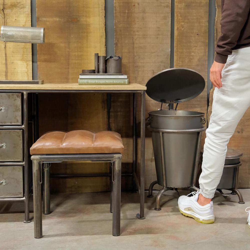 Denne store Klapp pedalspand i metal kombinerer råt industrielt design med praktisk funktionalitet. Spanden er udført i solid kvalitet med et robust stel og et vippelåg, der åbnes nemt med en fodpedal. Den gedigne konstruktion gør den både slidstærk og stabil, mens den matte metalliske overflade tilfører et cool og karakterfuldt udtryk. Brug den som affaldsspand, opbevaringsløsning eller endda som en anderledes vasketøjskurv, mulighederne er mange. Det tidløse design gør den velegnet til både bolig, butik og caféindretning. Findes også i en mindre udgave, søg på Klapp i webshoppen for at se hele serien.