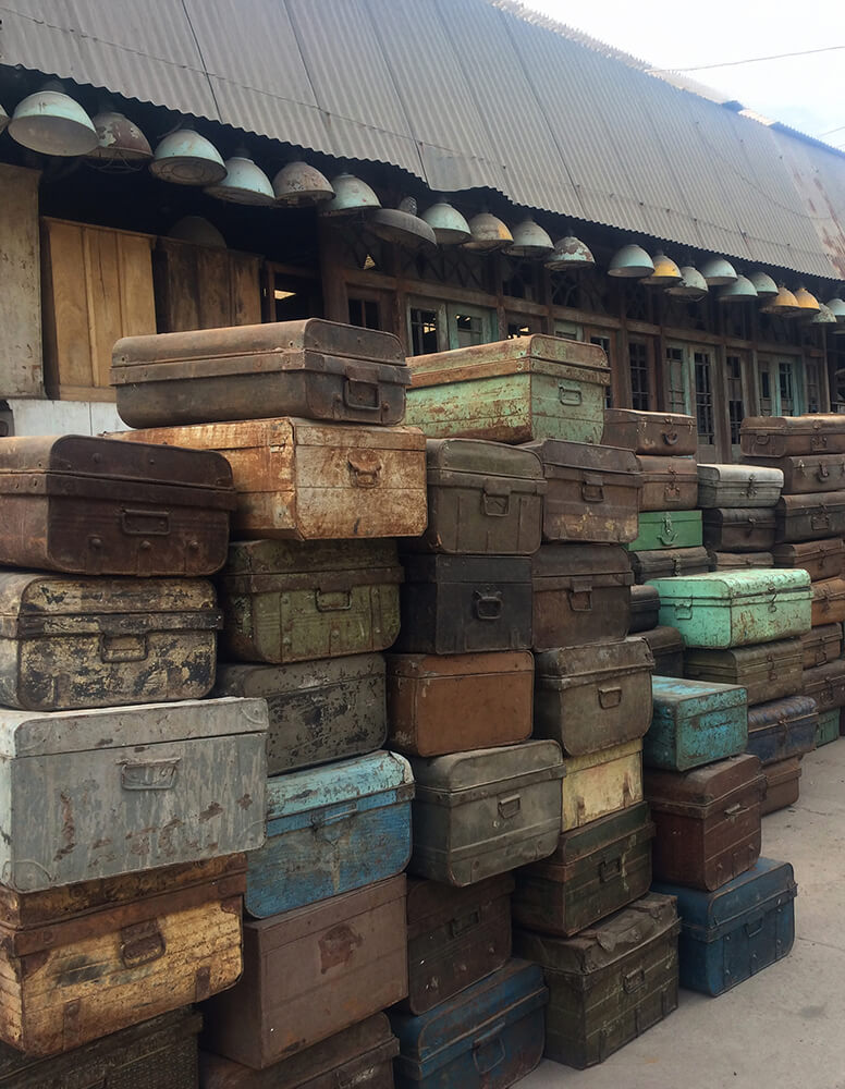 Kufferterne kan allerede fortælle sine anekdoter fra Indien, men er nu rejst hele vejen til Danmark, klar til nye eventyr. Jernkufferterne har den smukkeste patina og mange flotte detaljer. Brug dem til opbevaring af tæpper, sengetøj, krukker eller noget helt fjerde. De to jernkufferter vil helt sikkert tilføje din indretningen en autentisk stemning. Den lille kuffert måler: H:23cm W:60cm D:37cm