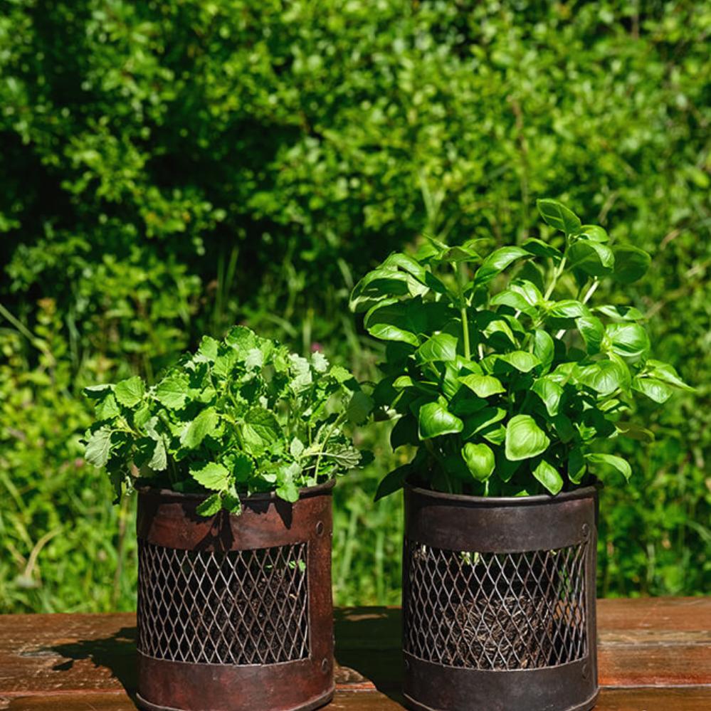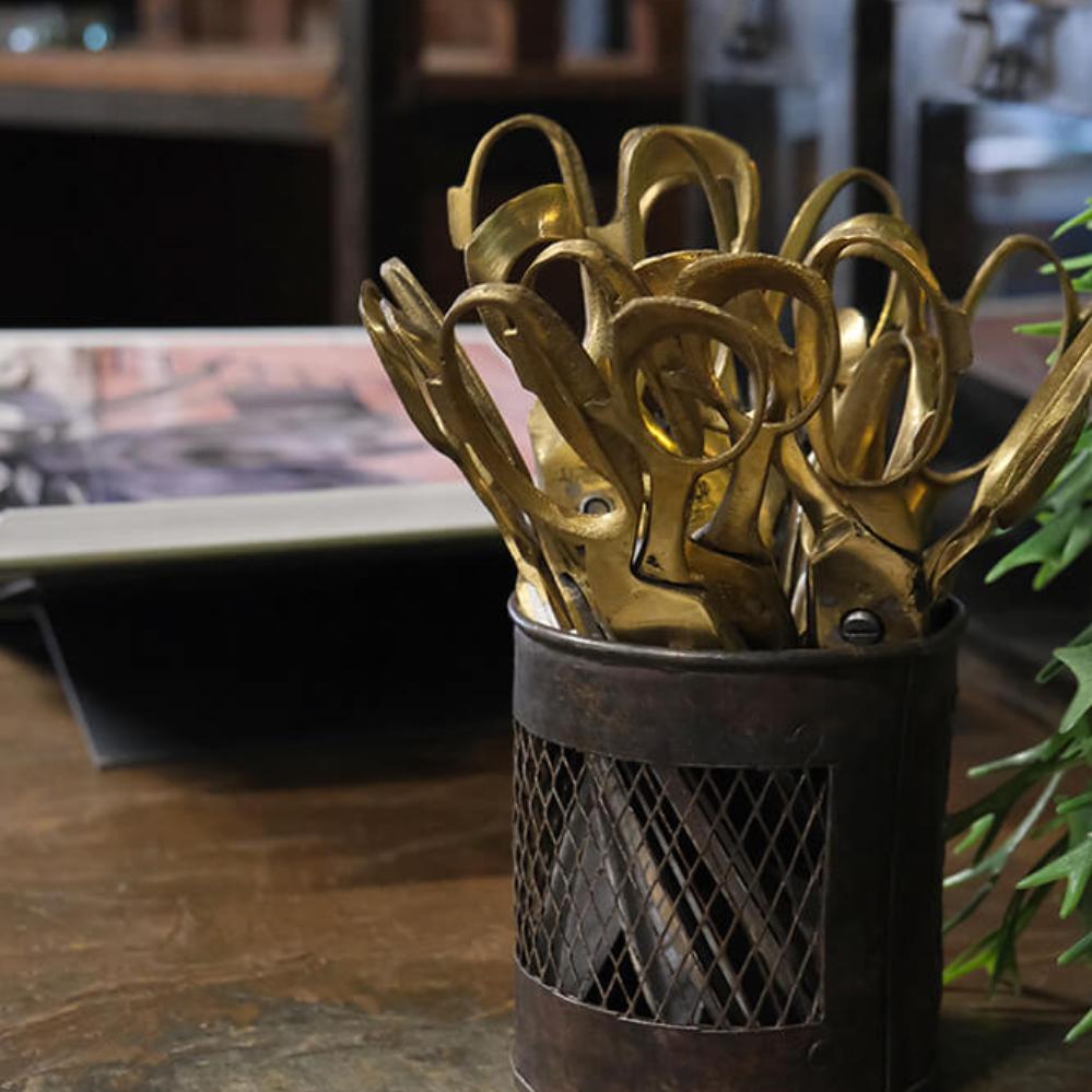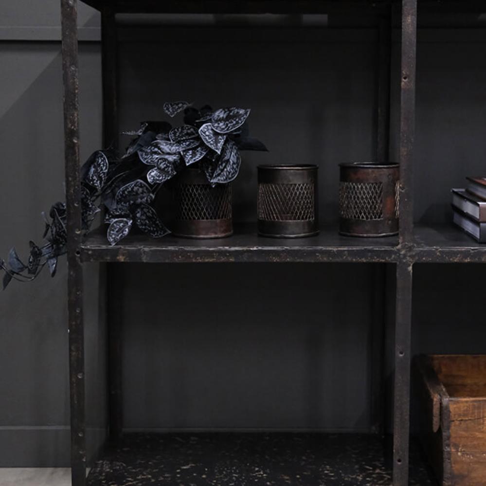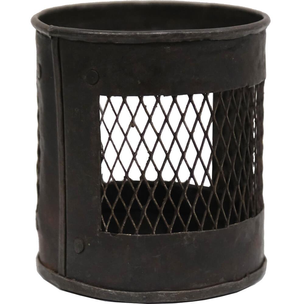 Med en mørk finish emmer denne jernbeholder af rå og industriel stil. Beholderen kan bruges til alt fra kontorartikler til bestik og det rustikke metal mesh design sætter en tyk streg under beholderens industrielle udtryk.