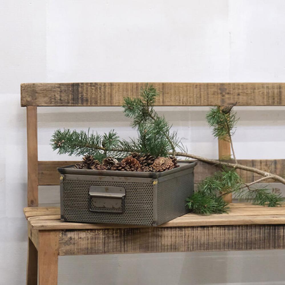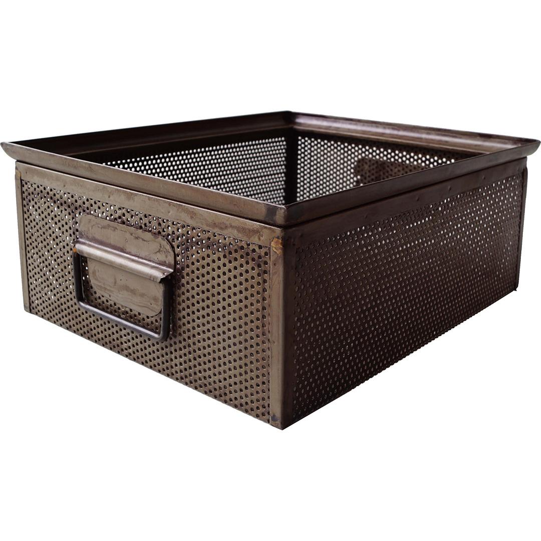 Skøn rå kasse i perforeret jern med klar lak. En holdbar og dekorativ kasse, der kan bruges alle steder i hjemmet. På kontoret, til bøger, til legetøj, til blomster, krydderurter og meget mere.