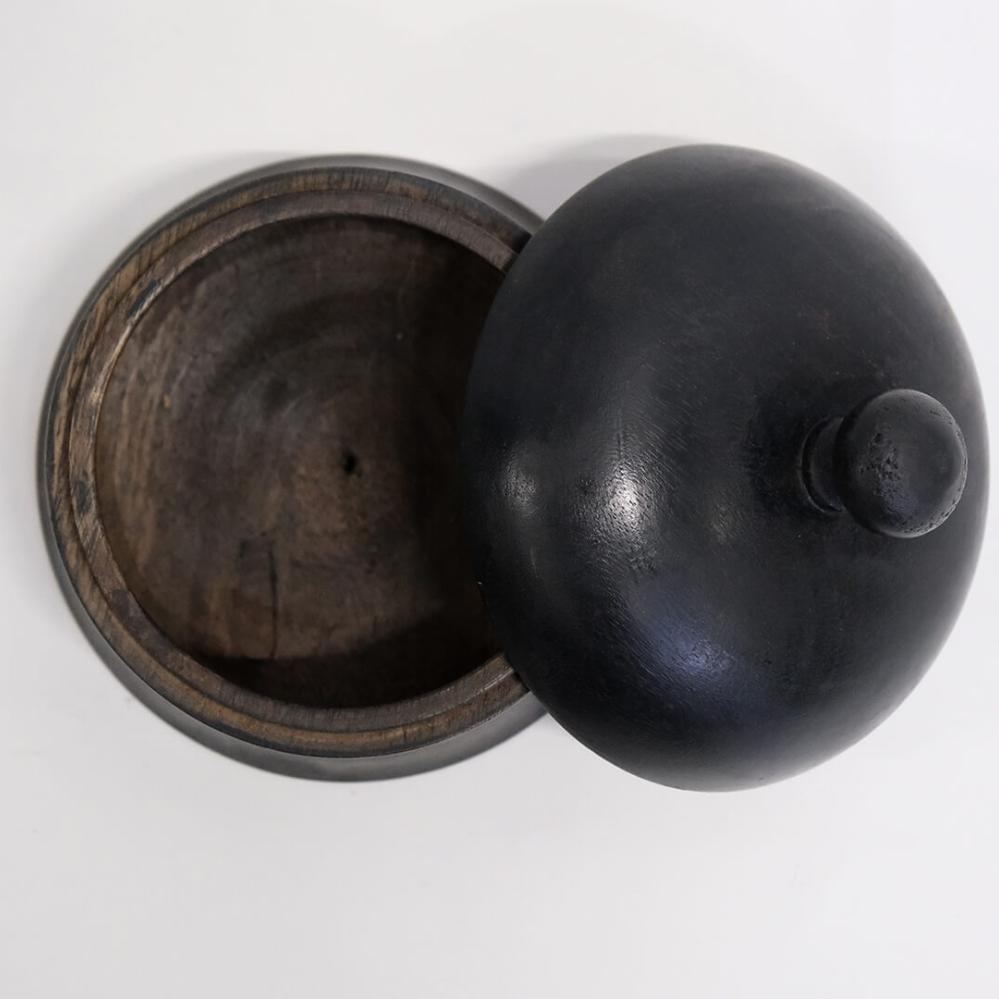 Skøn sortmalet æske i træ med et fint låg. Æsken er både en dekorativ og smuk opbevaring til mange formål, og vil med sine bløde og lidt runde facon pryde enhver indretning.