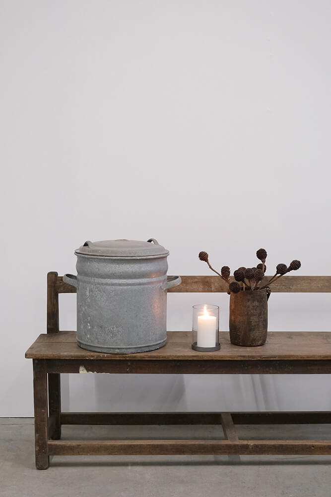 Charmerende gamle zinkspande med låg og praktiske sidehåndtag. Spandene bærer på masser af historie og har fået en skøn patina, der vidner om mange års brug. Nogle af dem er endda dekoreret med originale klistermærker og motiver, som giver hver spand sit helt eget udtryk. De er oplagte som dekorative elementer i hjemmet, butikken eller caféen. Brug dem til opbevaring, til skraldespand, som anderledes plantekrukker eller blot som rå blikfang i indretningen. Med låg og håndtag er de både funktionelle og fulde af karakter.