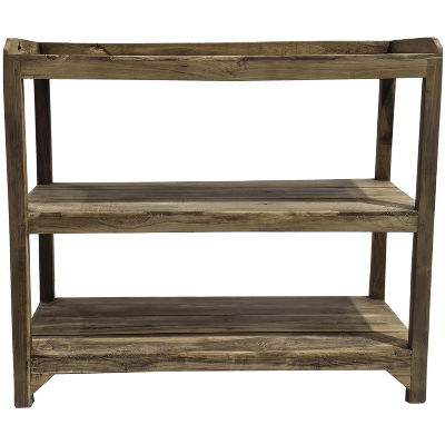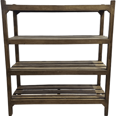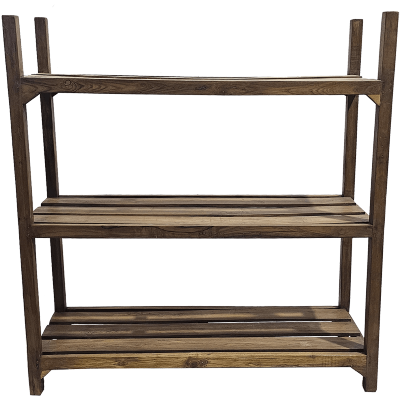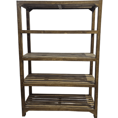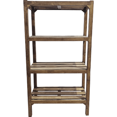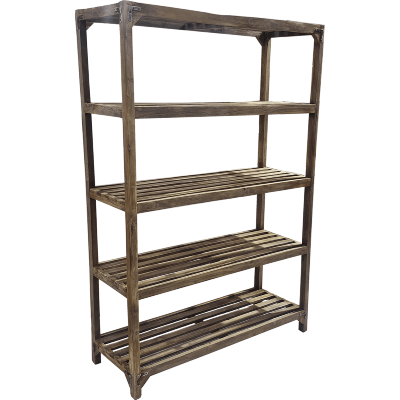 Rustikke træ reoler i genanvendt træ med lameller eller trækasser