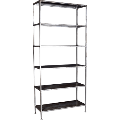 En stor flot reol i jern kræver lidt plads, men giver dig rig mulighed for opbevaring, opdeling og orden på en rå og æstetisk måde.