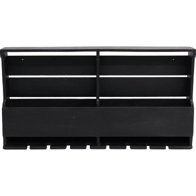 Sortimentet af vægreoler og hylder rummer store og små hylder i materialer som læder, jern og træ. Hylderne er stilrene og enkle i udtrykket, og understreger samtidigt en rå og industriel indretning.
