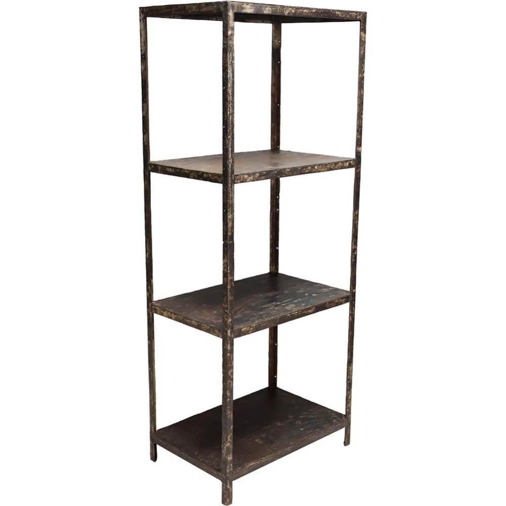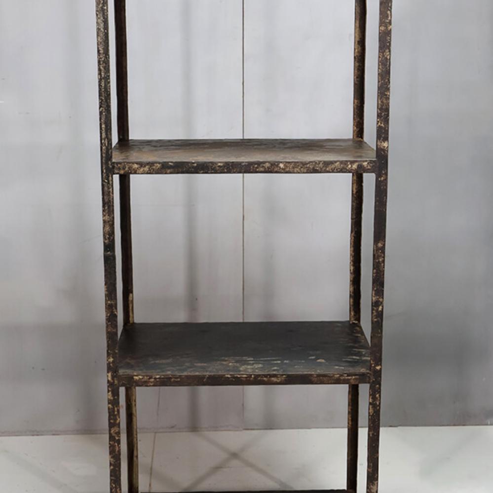 Denne reol er lavet af gamle køreplader og emmer af rå, industrielt inspireret charme. Med dens slidte metaloverflade og robuste konstruktion er den et maskulint møbel, der kan skabe karakter i din indretning. Reolen har fire hylder, som giver rigeligt med opbevaringsplads til bøger, dekorative elementer eller andet, du ønsker at vise frem. Perfekt til både butiksmiljøer og hjem, hvor man ønsker at tilføje et rustikt, upcyclet element med masser af historie og personlighed. Afstanden mellem hylderne er 44 cm.