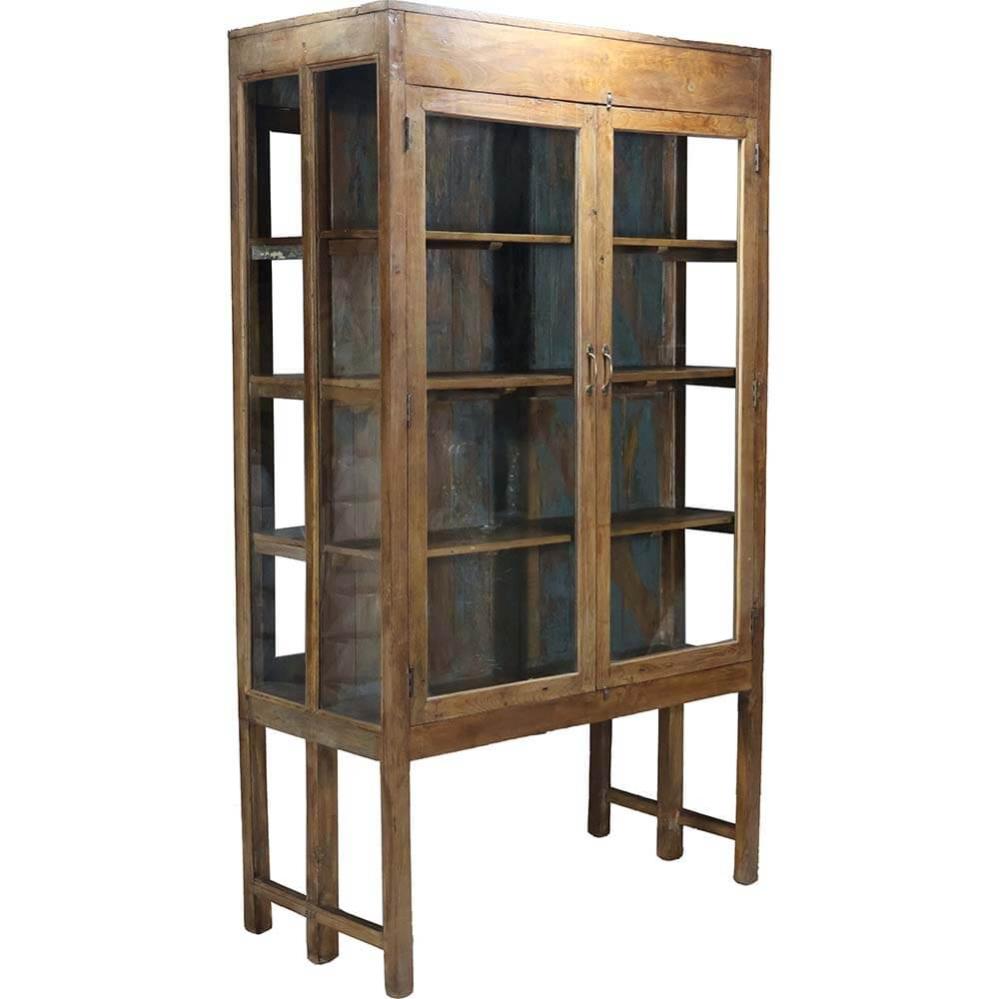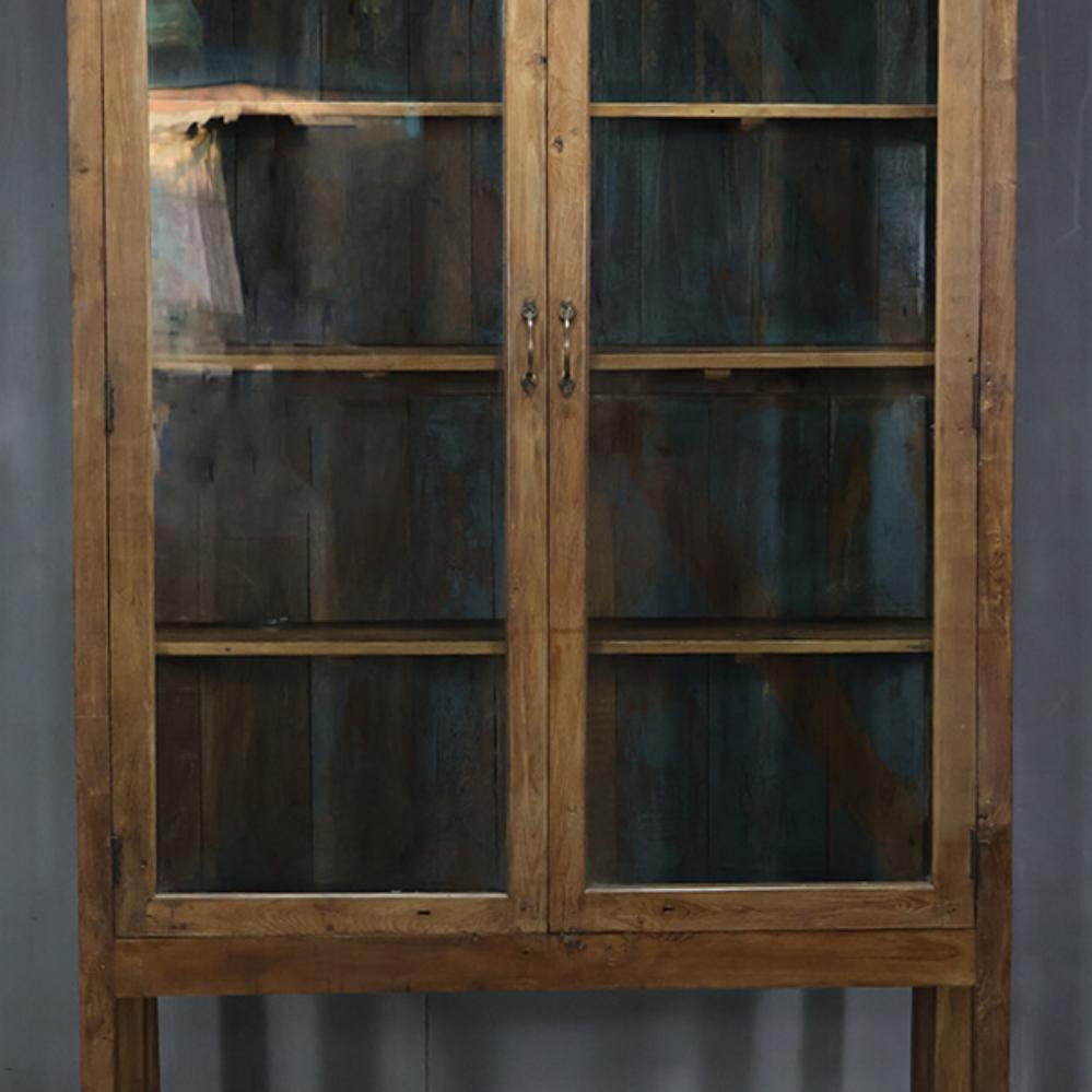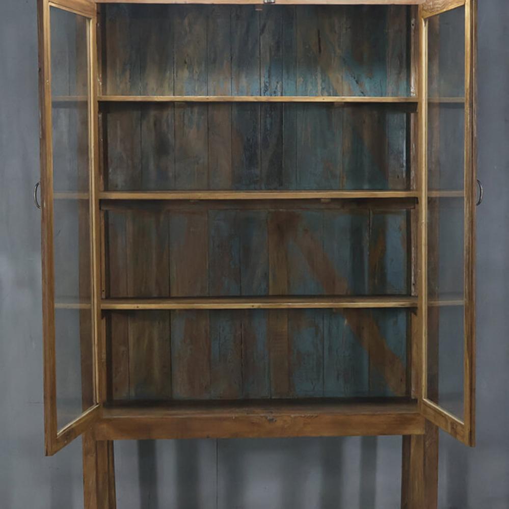 Dette dobbelte vitrineskab er en sand perle for dig, der søger noget unikt og funktionelt. Med låger på begge sider af skabet kan du nemt tilgå og fremvise dine ting fra forskellige vinkler. Skabet er lavet af træ med en flot patina og har glas på alle sider, hvilket giver det et let og luftigt udtryk. De rummelige hylder gør det perfekt til opbevaring og udstilling af alt fra porcelæn og glas til dekorative genstande. Ideelt til både hjemmet, caféen eller butikken, hvor det kan bidrage til en charmerende og personlig stemning.