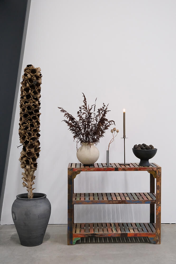 Denne reol er et fantastisk eksempel på, hvordan genanvendt træ kan skabe møbler med både sjæl og historie. Reolen er opbygget af lameller i genanvendt træ, hvilket giver den en unik karakter, hvor ikke to reoler er ens. Farverne på lamellerne varierer fra stykke til stykke og tilføjer et farverigt og levende udtryk. Reolen passer perfekt ind i både hjemmet og professionelle miljøer som caféer, eller butikker, hvor den kan bruges til opbevaring eller udstilling. Med sin robuste konstruktion og smukke patina er det et møbel, der både er funktionelt og fyldt med personlighed. Bemærk at reolen kan variere en del i farvespillet på lamellerne.