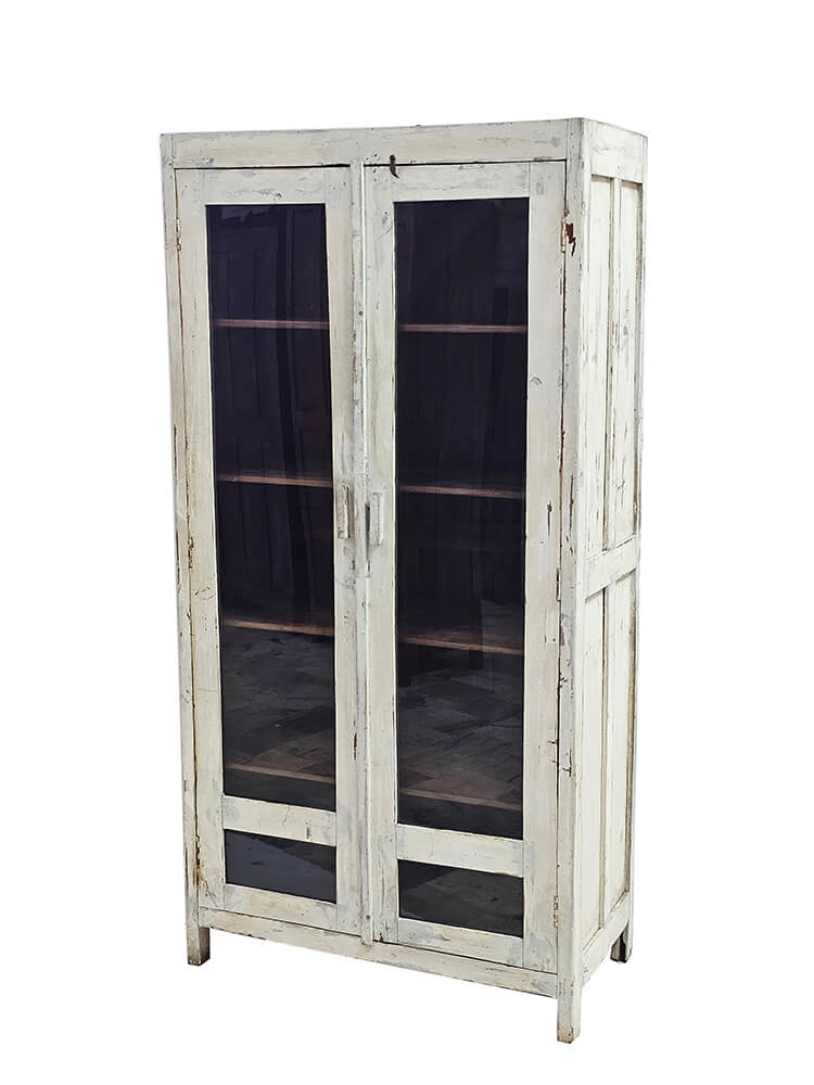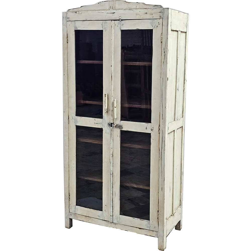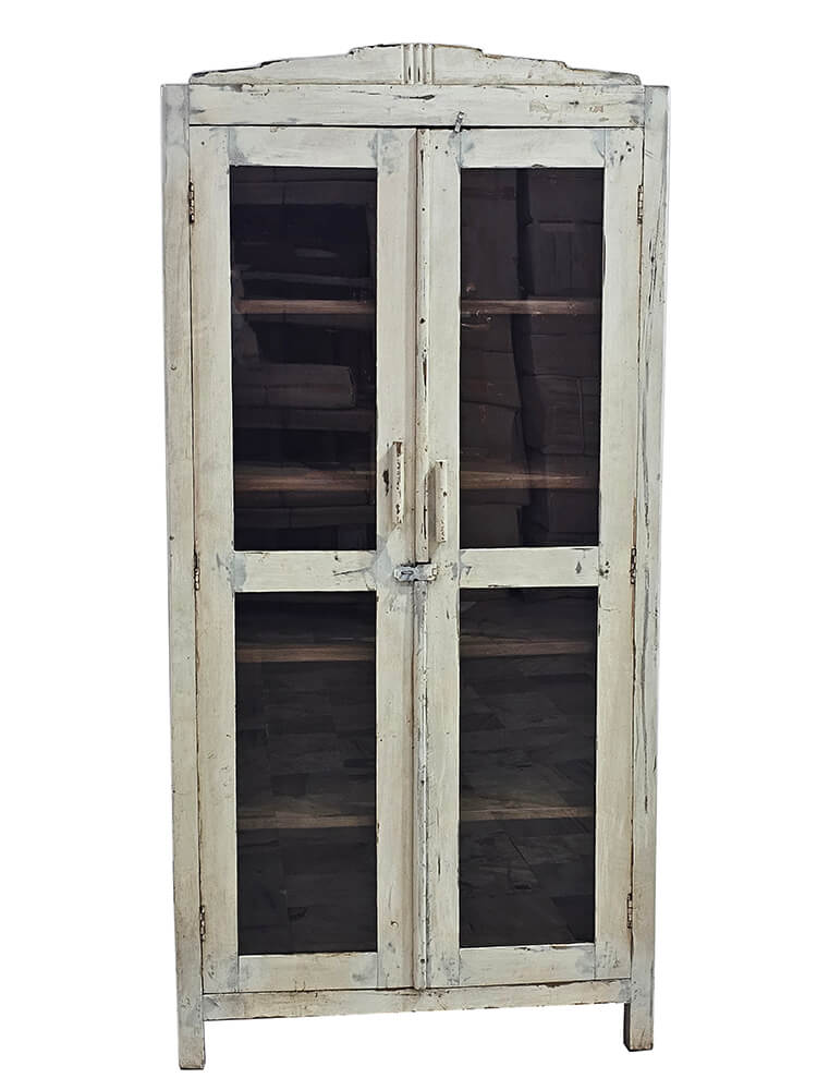 Disse gamle hvide vitrineskabe er smukke, originale møbler med masser af charme og historie. Hvert skab er unikt og adskiller sig i både form, detaljer, hyldeinddeling og størrelse, hvilket gør dem til helt særlige fund. Den slidte hvide maling og den naturlige patina giver skabene et blødt, autentisk udtryk, som passer perfekt ind i både klassiske, landlige og mere moderne hjem. De glasinddelte låger gør vitrineskabene ideelle til opbevaring og fremvisning af porcelæn, glas, bøger eller dekorative genstande, samtidig med at indholdet stadig føles let og luftigt. Træets spor af brug, som afskallet maling, små ujævnheder og farvevariationer, er en del af charmen og vidner om skabenes lange liv. Skabene kan bruges i mange rum: som vitrineskab i stuen, opbevaring i køkken eller spisestue, linnedskab i soveværelset eller som et stemningsfuldt møbel i entré eller butik. Et ærligt og karakterfuldt møbelvalg til dig, der værdsætter originalitet frem for det perfekte.