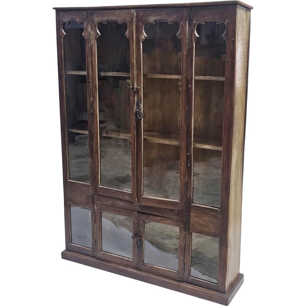 Et charmerede gammelt vitrineskab i træ med fire glaslåger, der giver et flot og åbent udtryk. Skabet har en klassisk form med dekorative udskæringer foroven og en varm, naturlig patina, der vidner om mange års brug og håndværk. Indvendigt byder vitrinen på god plads med flere hylder, perfekt til opbevaring af service, bøger eller dekorationer. De fire låger gør det nemt at holde styr på indholdet, mens glasfelterne giver et spændende kig ind i skabet. Et karakterfuldt møbel, der passer lige så godt i et hjem, som i en café eller butik, og som tilføjer en varm og autentisk atmosfære til rummet.