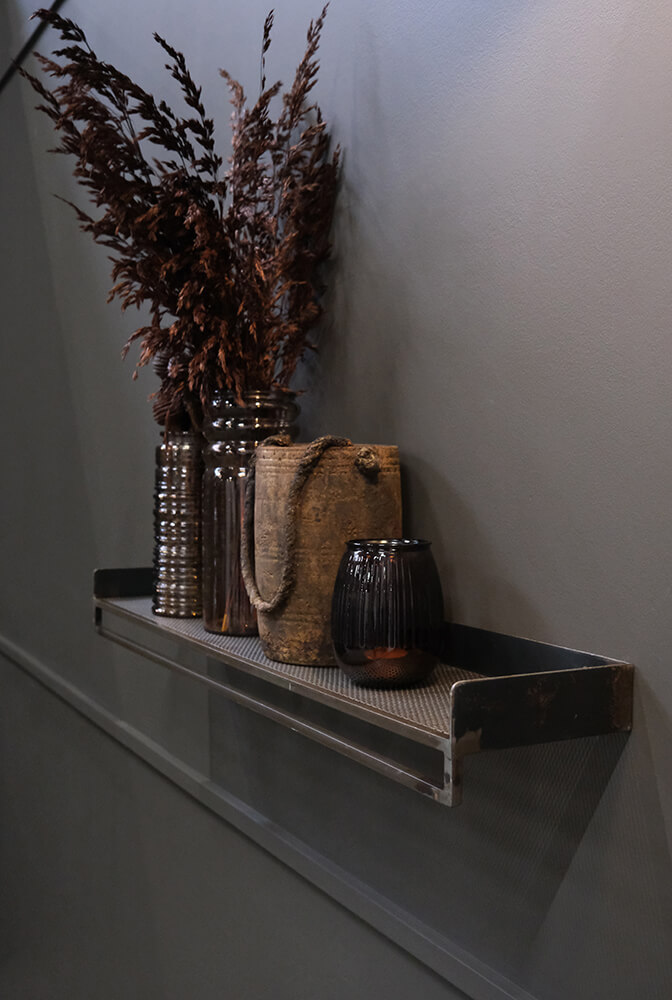 Få den industrielle stil ind i din indretning med denne rå hylde i perforeret jern. Brug hylden i dit badeværelse, til dine håndklæder og til at skabe hygge med duftlys og planter, eller i din entre hvor du kan tilføje vores Mr. S krog (varenummer: M16596 + M1518) og bruge den til overtøj, tørklæder og tasker.