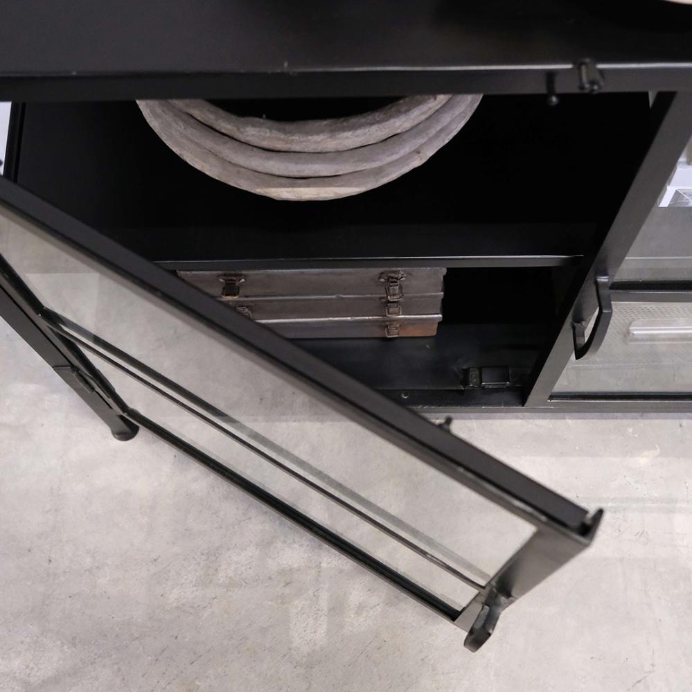Moderne og funktionel skænk med glas i både siderne og lågerne. Perfekt til opbevaring samt udstilling af dit smukke boligtilbehør. Skabet giver en god kontrast til den stilrene indretning. Hyldehøjde øverst ca. 36 cm. / Hyldehøjde nederst ca. 38 cm. Du finder et matchende skab med fem hylder under varenummer: M1006