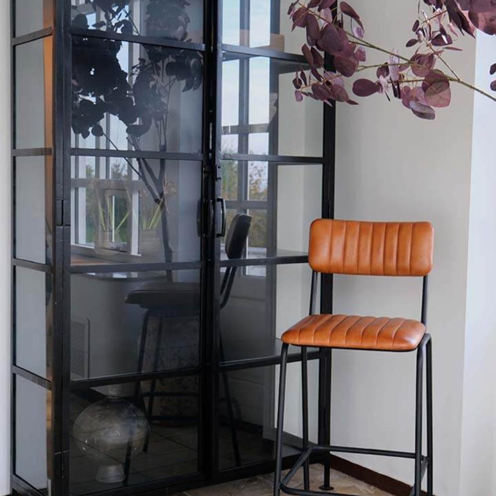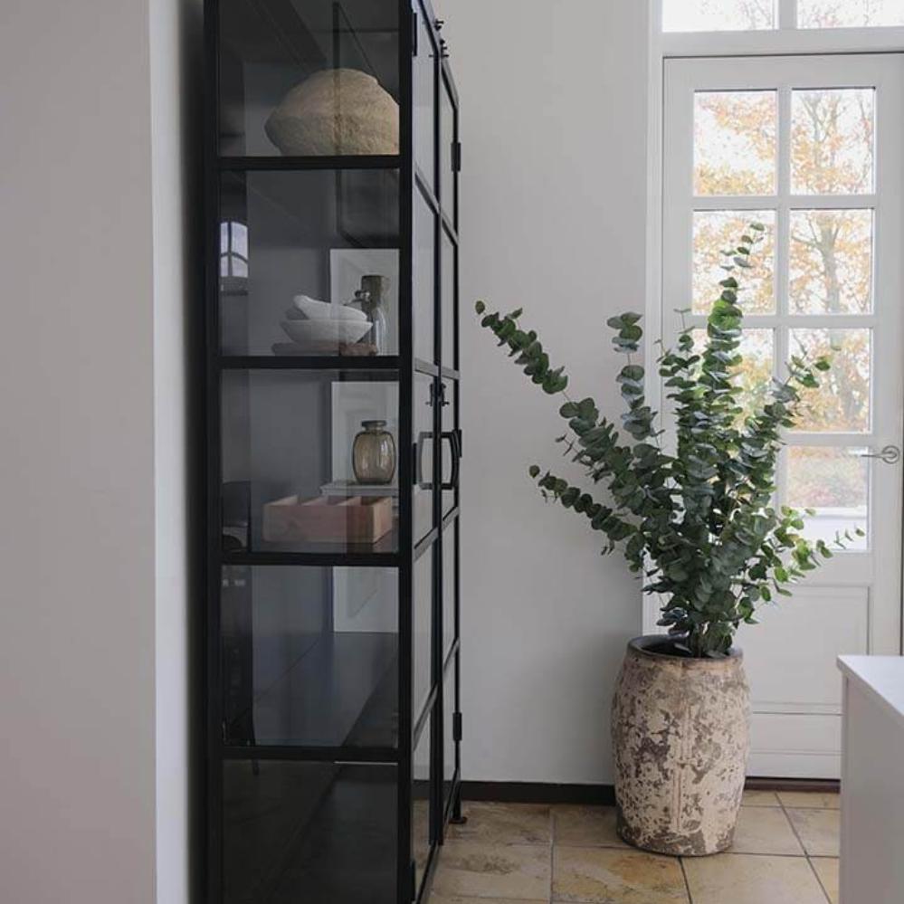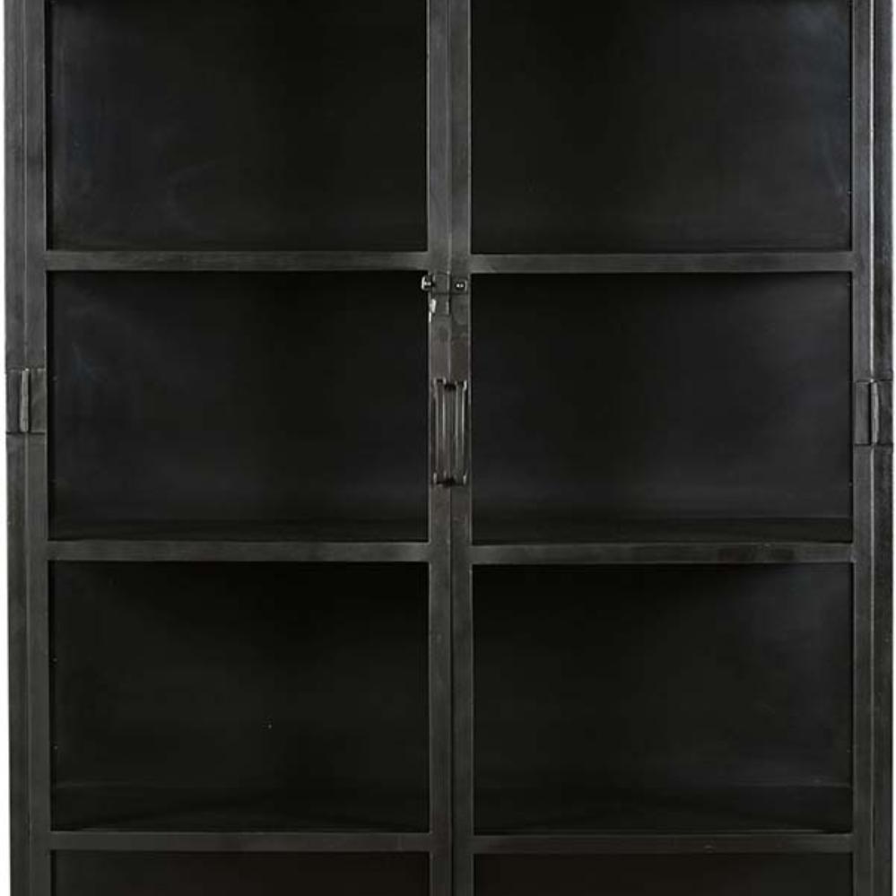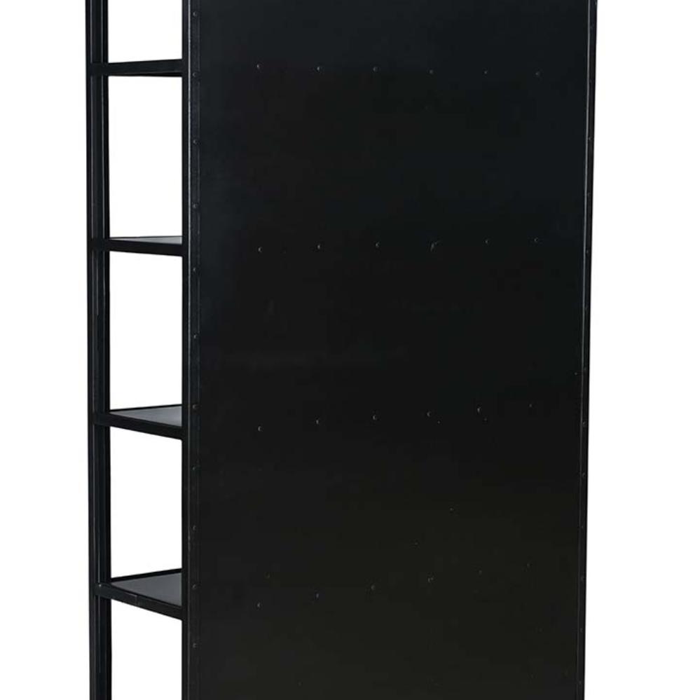 En Trademark Living darling. Dette fantastiske vitrineskab i sortlakeret jern har det hele. Stor rummelighed, 5 hylder og glas i både front og på siderne. Et lækkert, råt vitrineskab med et supercool industrielt look, der tager sig flot ud i det klassiske og moderne hjem. Du finder en matchende skænk med to hylder under varenummer: M09045. Afstanden mellem hylderne er 34 cm.