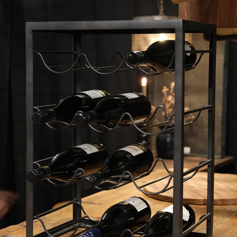 Denne vinreol i klarlakeret jern er både robust og stilren. Med plads til 12 flasker er den designet til at opbevare din vinsamling sikkert og overskueligt. Det minimalistiske design og den industrielle jernfinish gør vinreolen til et tidløst element, der passer perfekt ind i både moderne og rustikke indretninger. Dens kompakte størrelse gør den nem at placere i køkkenet, spisestuen eller vinkælderen, hvor vinreolen kan fungere som både praktisk opbevaring og dekorativt indslag. Et must-have for enhver vinelsker!