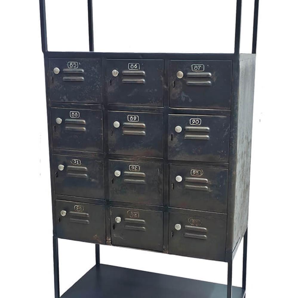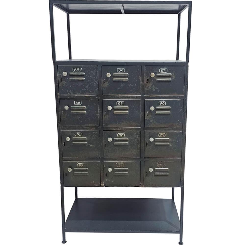 Denne reol er ikke bare opbevaring. Den er historie på ben. Fremstillet af et gammelt lockerskab og forvandlet til en rå reol med 12 små låger, åbne hylder og masser af personlighed. Farverne varierer og hver model har sine egne unikke detaljer, - patina, tal, mærkater og en god portion industrielt slid. Med en dybde på 45-50 cm er der plads til både opbevaring og udstilling. De små låger gør det nemt at gemme rod væk, mens hylderne egner sig perfekt til bøger, flasker eller dekorative elementer. Brug den som barskab i restauranten, som display i butikken eller som et markant statement-piece i stuen eller entréen. Den her jernreol behøver ikke gøre sig umage. Den oser af karakter helt af sig selv.