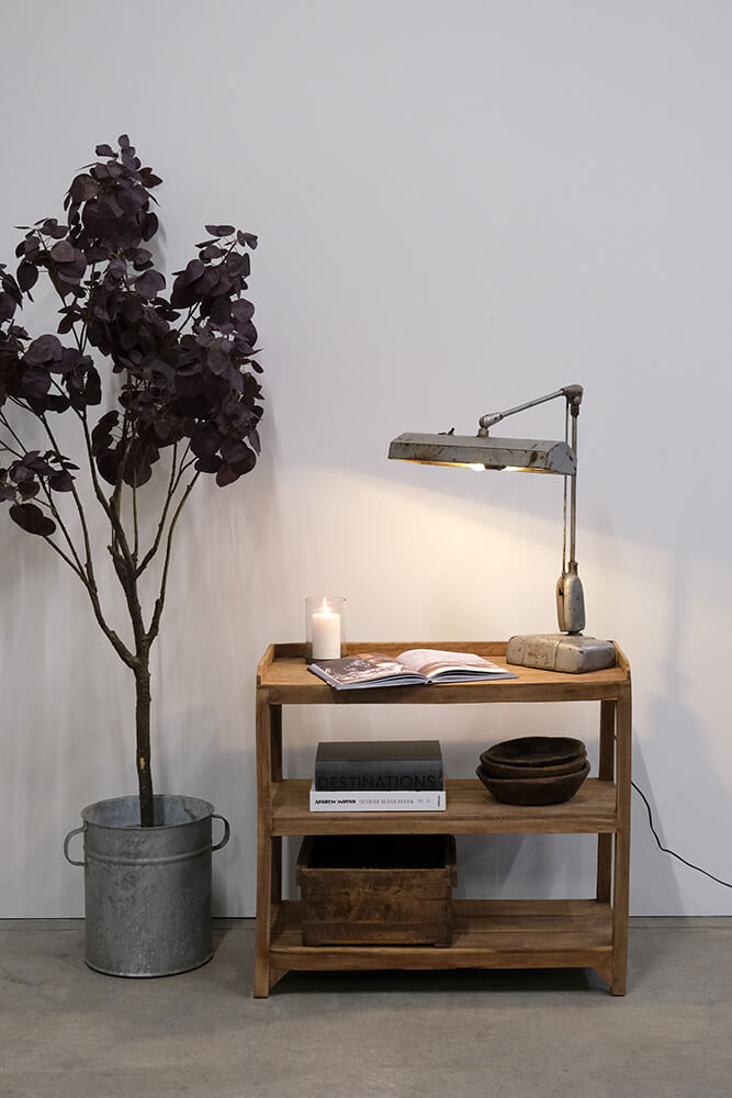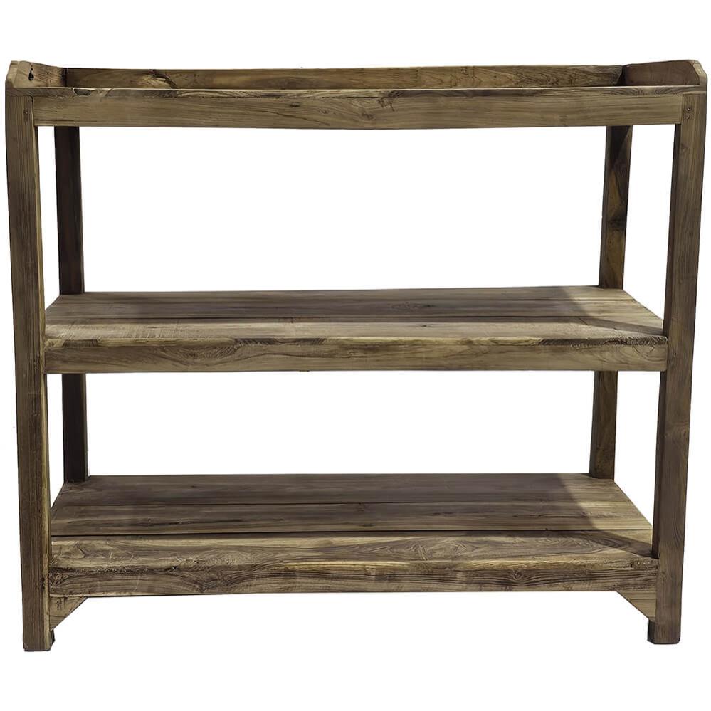 Denne skønne reol i træ byder på tre rummelige hylder og et enkelt, funktionelt design med masser af varme. Udseendet kan variere fra reol til reol, da både struktur og farve kan skifte udtryk. Præcis som det skal være, når materialet har fået lov til at ældes naturligt. Reolen er perfekt til både opbevaring og udstilling. Brug den i køkkenet til service og kurve, i stuen til bøger og krukker eller i butikken til produkter, der fortjener en fin og rå præsentation. Et alsidigt møbel, hvor forskelligheden er en del af charmen. Bemærk at reolerne varierer en del i udseende og størrelse.