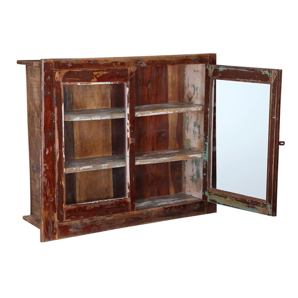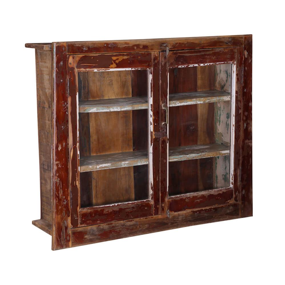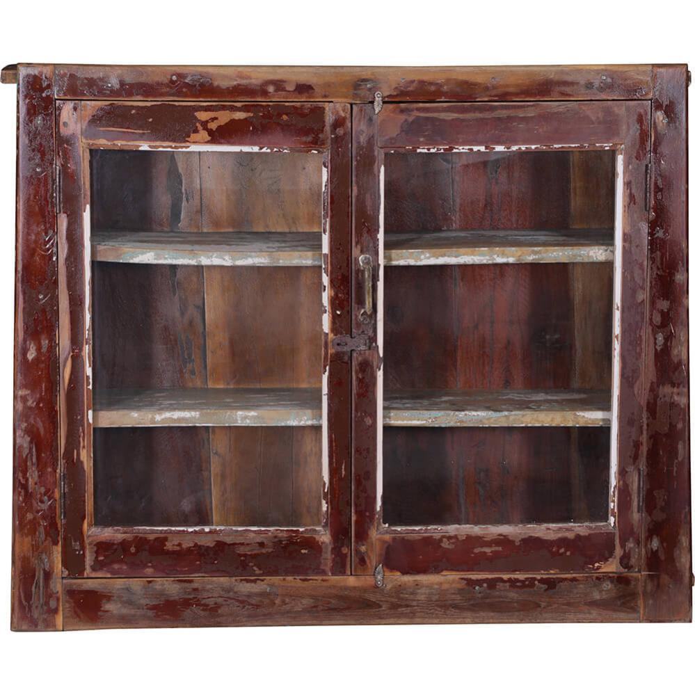 Hver eneste rustikke detalje i dette skab fortæller en historie, fra de slidte kanter til de naturlige træmærker. De to elegante glaslåger giver et sofistikeret touch, samtidig med at de fremviser skabets indhold. Med to rummelige hylder indeni er der rigelig plads til at opbevare og udstille dine skatte.