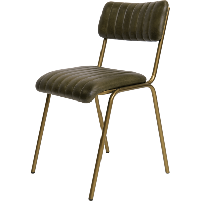 Diner spisebordsstol med quiltet læder - grøn/messing