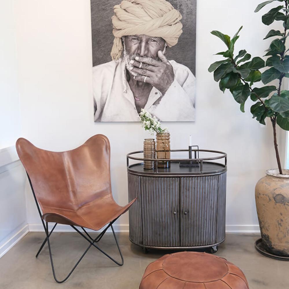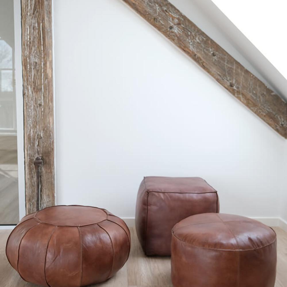 Her har du vores bud på en klassisk fortolkning af marokkopuden. En lækker puf fremstillet i brunt læder, med markante syninger og fyldt med genbrugsbomuld. Denne Gustav læderpuf kan både bruges som et siddemøbel, til fodskammel eller et hyggeligt sofabord hvis du tilføjer en rund bakke. Gustav puffen har et lækkert vintagelook, og kan tilføre din indretning både komfort og go stil.