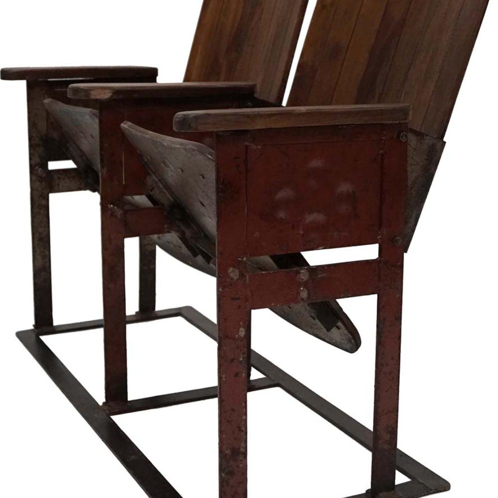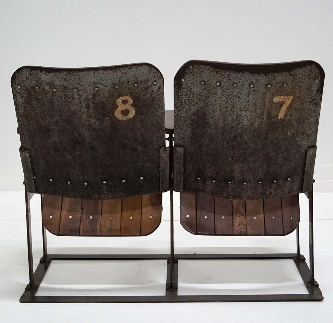 En autentisk og charmerende biografbænk med 2 sæder, der bærer brugsspor og er fyldt med historie. Sæderne er lavet af solide trælameller med en smuk patina, og stellet er af metal, der tilføjer et industrielt og råt udtryk. Bænken er en skøn kombination af funktionalitet og nostalgi – perfekt til dig, der ønsker et møbel med personlighed. Bænkens armlæn og den klassiske opbygning gør bænken komfortabel, mens dens slidte look giver karakter og varme til rummet. Brug den som en iøjnefaldende detalje i entréen, som siddeplads i en butik eller café, eller som en unik detalje i hjemmets hyggekrog. Et stykke møbel, der skaber historie i enhver indretning. OBS! Det er ikke en selvfølge at de biografbænke, vi får, har numre påmalet.