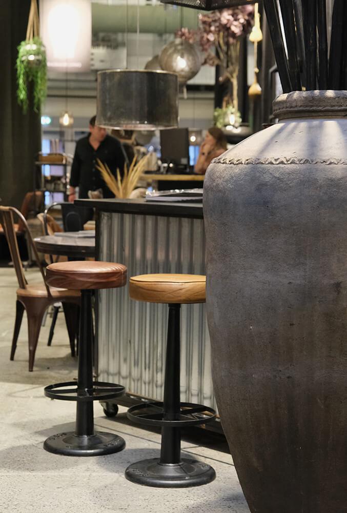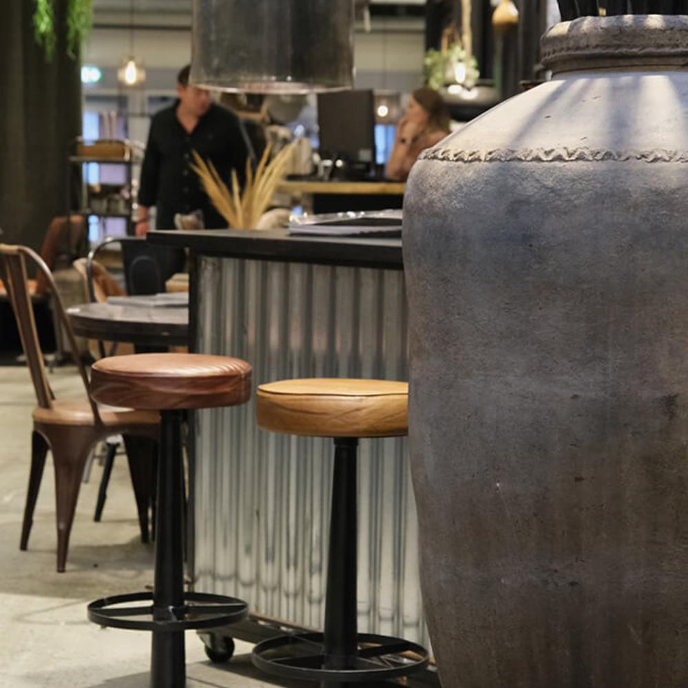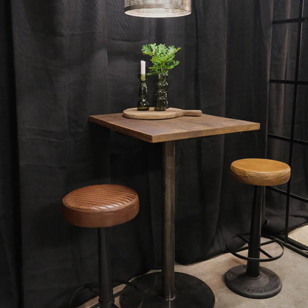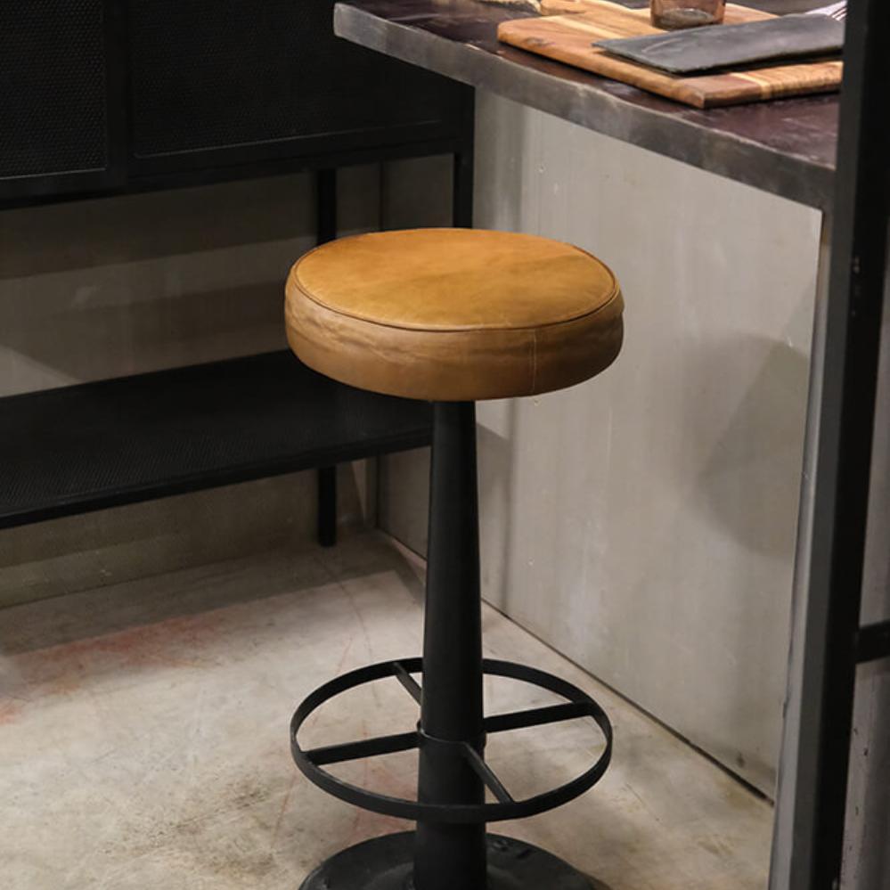 Denne barstol er den perfekte blanding af industrielt og rustikt udseende. Med et polstret sæde i læder, der tilbyder komfort, og en solid base i sort jern, emmer stolen af robusthed og karakter. Fodstøtten er praktisk og giver ekstra støtte, hvilket gør den ideel til både barer og ved højborde i hjemmet. Den minimalistiske form og det maskuline udtryk gør stolen velegnet til moderne og industrielle indretninger – fra caféer og restauranter til hjemmets hyggelige barområde. Dette er en barstol, der holder, både hvad angår stil og funktion.