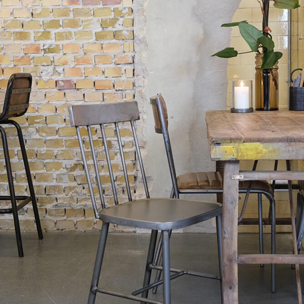 Giv dit spiseområde et råt og industrielt præg med denne spisebordsstol i jern. Stolen er lavet af jern med en rå finish, der giver den et autentisk og rustikt look. Den enkle ryg med lodrette metalstænger og et solidt sæde gør den både robust og praktisk. Stolens neutrale farve gør den desuden nem at kombinere med forskellige borde og indretningsstile.