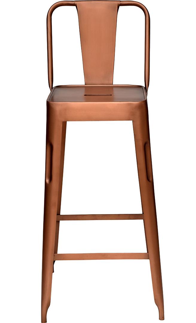 Denne barstol i kobber look tilføjer en varm, industriel charme til dit rum. Med sit slanke metalstel og høje ryg tilbyder stolen både stabilitet og et visuelt let udtryk, der passer perfekt til barer, højborde og restauranter. Barstolen fås i flere farver, så du kan finde den, der passer bedst til din stil. For ekstra komfort kan barstolen nemt kombineres med en af vores lækre siddehynder i læder. Søg efter M1401 for en hynde i sort læder eller M1404 for en hynde i brunt læder. Sædet er forberedt med fire små skruehuller i hvert hjørne, så montering af hynden er både hurtig og enkel. Uanset om du indretter en café, restaurant eller hjemmebar, er denne barstol et funktionelt og iøjnefaldende valg, der løfter rummets udtryk.