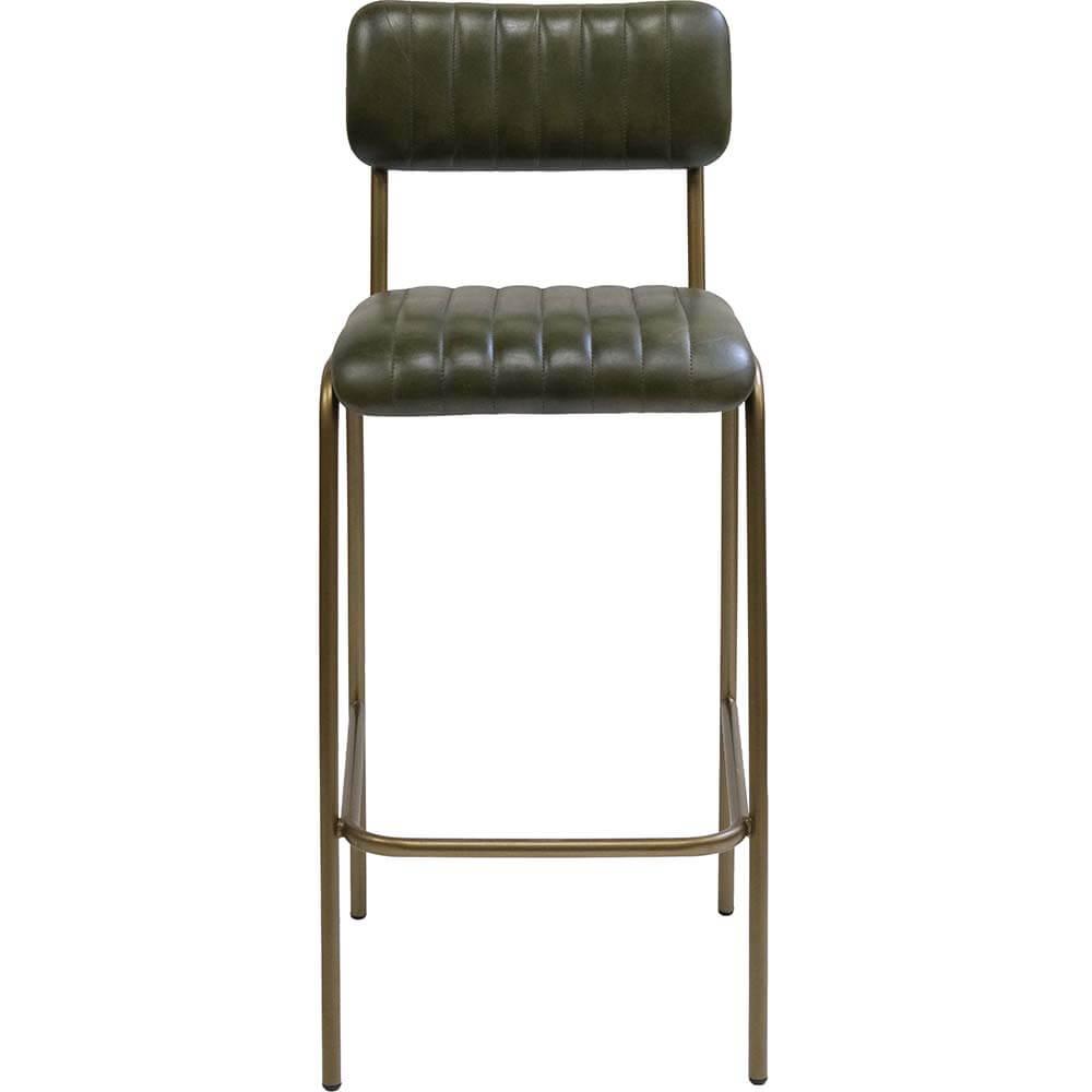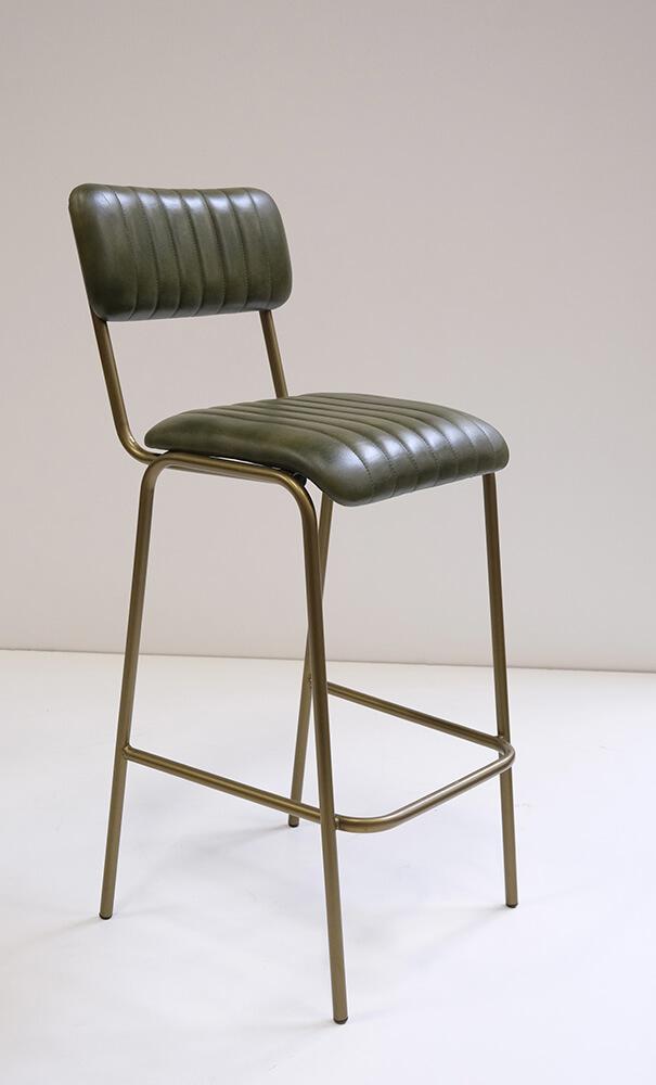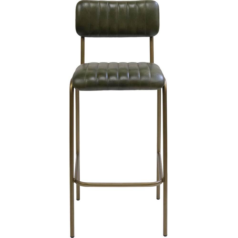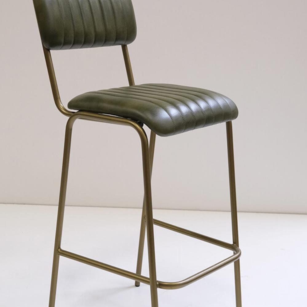 Diner Barstol med quiltet læder - grøn/messing