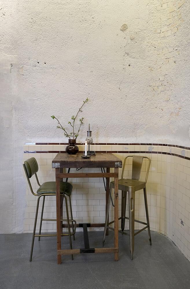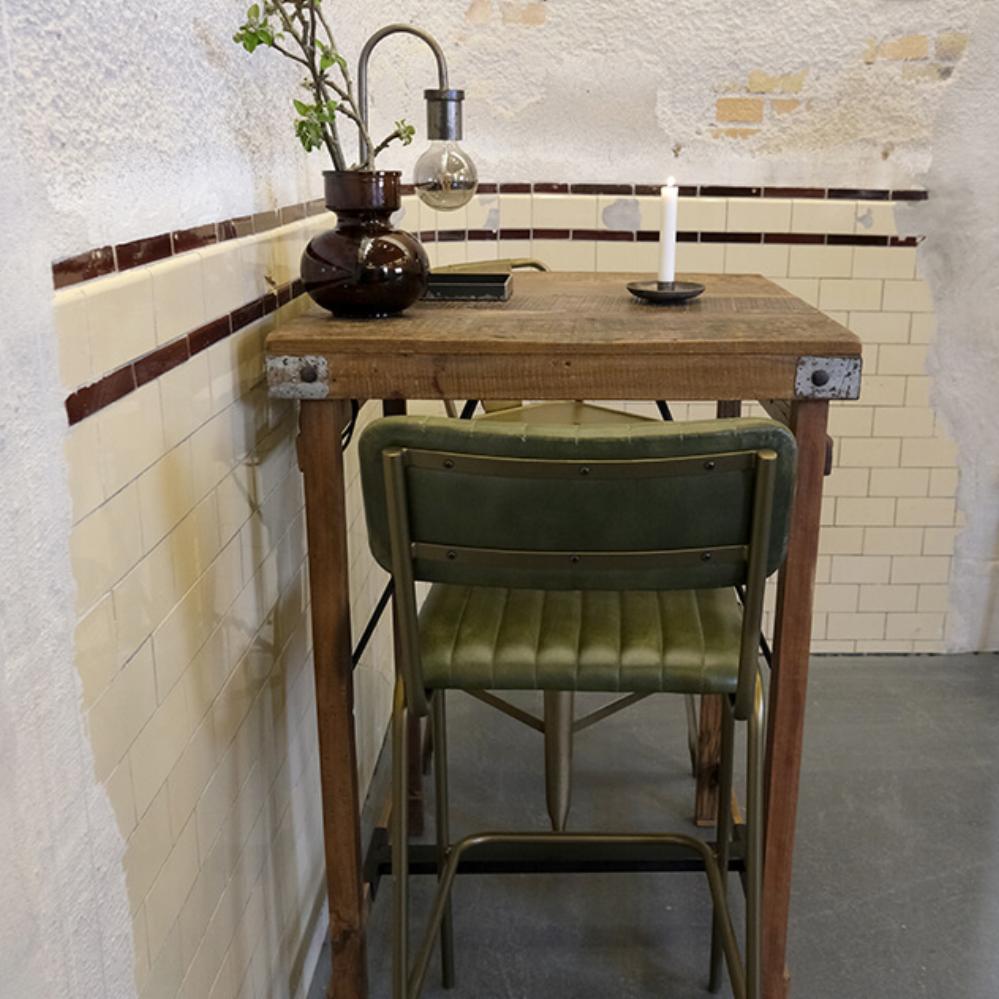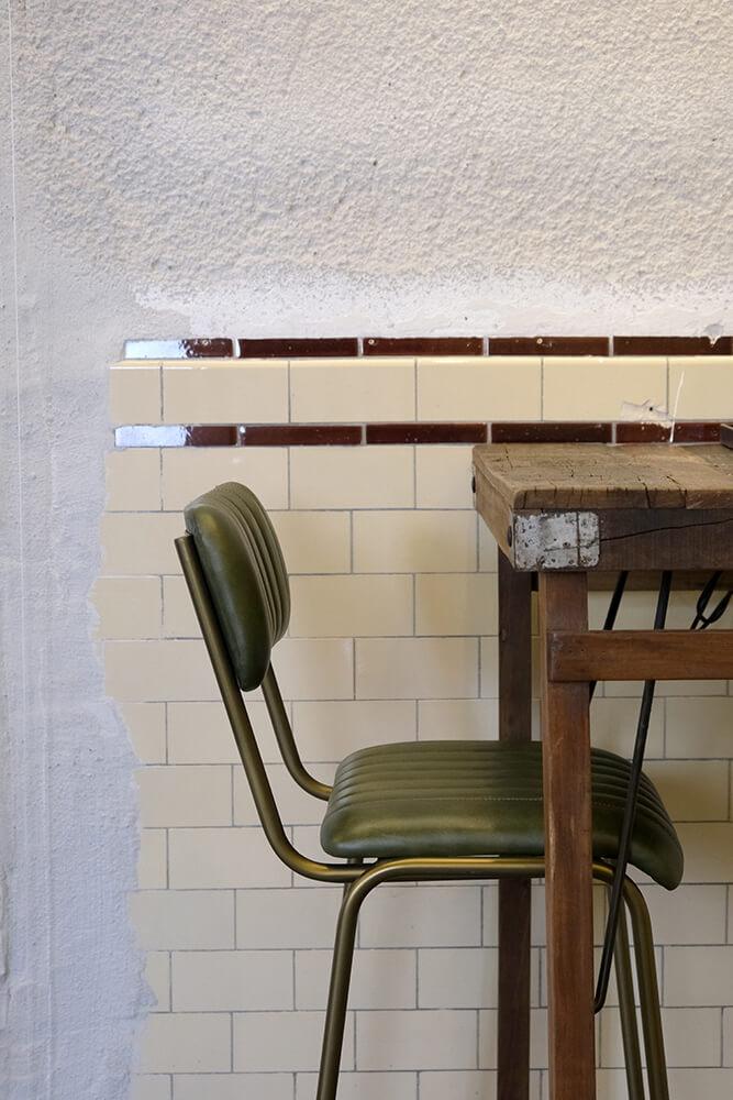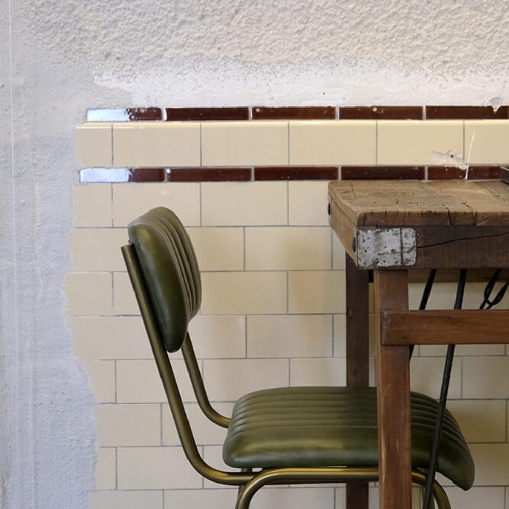 Diner Barstol med quiltet læder - grøn/messing