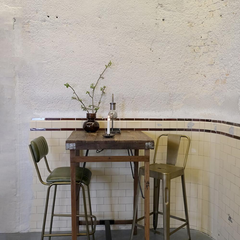 Lækker barstol med bløde former og endeløs komfort. Barstolen er beklædt med polstret quiltet bøffellæder i sæde og ryg. Det høje slanke stel i jern giver barstolen et klassisk og let udtryk. Bemærk at barstolen leveres i to dele med en lille pose med skruer, så man nemt kan montere ryggen på stolen. Søg på MA0114, for at se en matchende spisebordsstol.