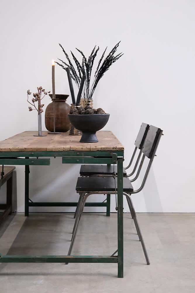 Her har du en enkel og robust spisebordsstol som passer ind i den rå og rustikke indretning. Stolen har et lakeret jernstel. Sæde og ryg er i træ. Denne stol kan med fordel anvendes i din café eller restaurant. Den er nem at rengøre med en opvreden klud. Hvis du ønsker at øge komforten, kan du med fordel bruge en sædehynde eller et smukt lammeskind.