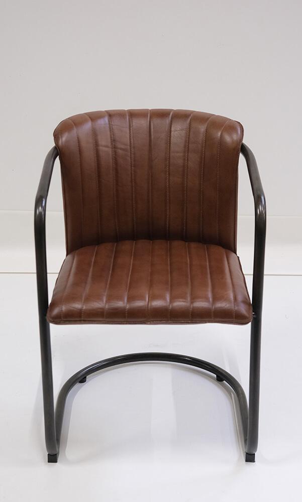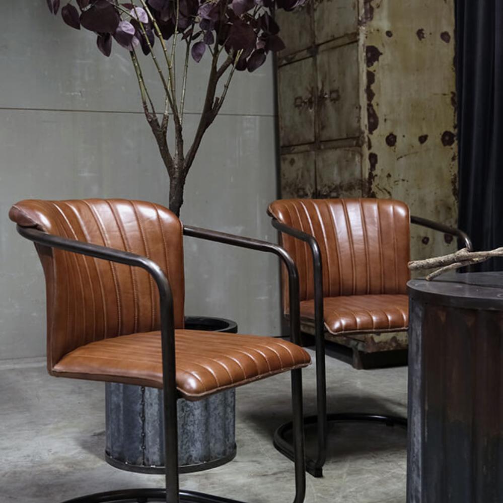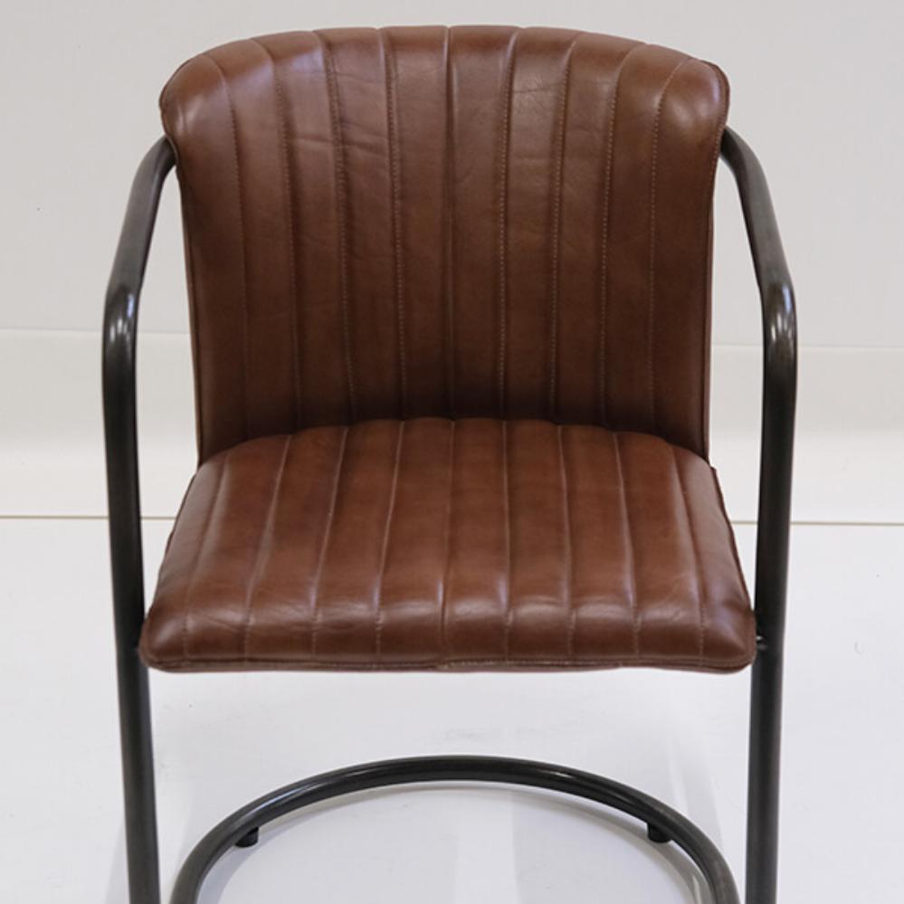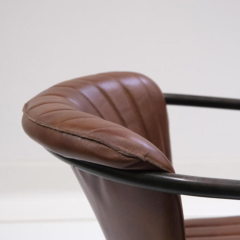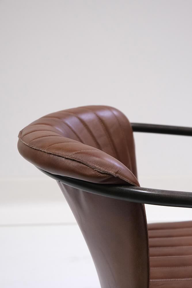 Denne spisebordsstol med quiltet læder oser af rå charme og industrielt udseende. Sædet og ryglænet er beklædt med brun quiltet bøffellæder, som giver stolen et autentisk og maskulint look. Det sorte metalstel, med sine buede linjer, skaber et robust udtryk, der samtidig gør stolen til et moderne indslag i indretningen. Spisebordsstolens design giver en god siddekomfort og gør den ideel til både hjemmets spisebord eller som en del af indretningen i caféer og restauranter.