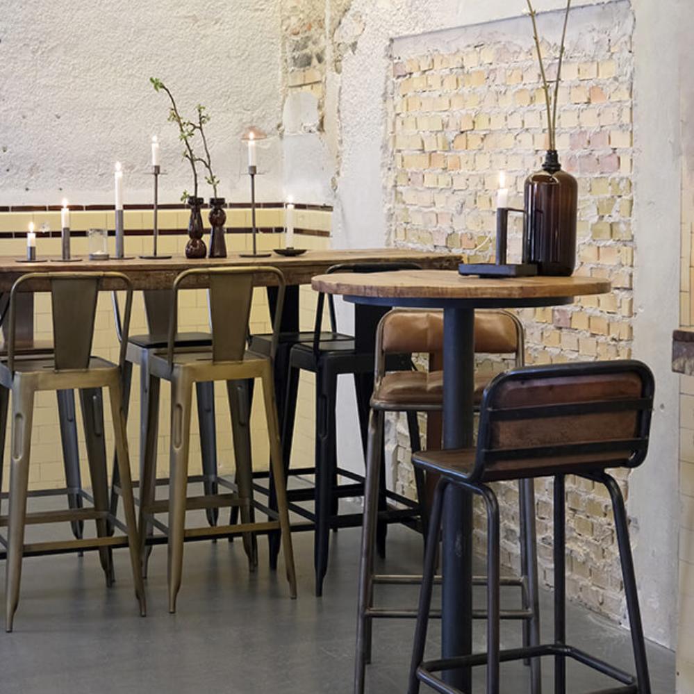 Hvis du er på udkig efter barstole, der er rustikke og unikke, så er Trademark Livings barstole det helt rigtige valg. Lad dine gæster nyde drinks i denne barstol, som er lavet i mørkebrun genanvendt træ og sort jern. Den har en super lækker naturfarve, som gør at den absolut ikke er kedelig.