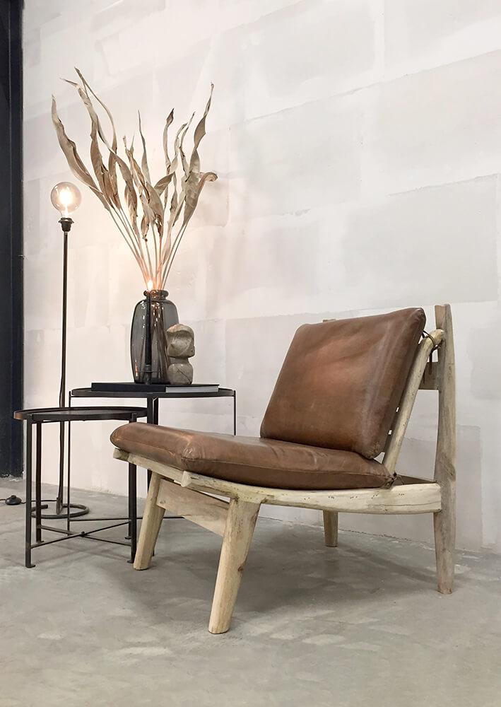 James loungestol med brune læderhynder
