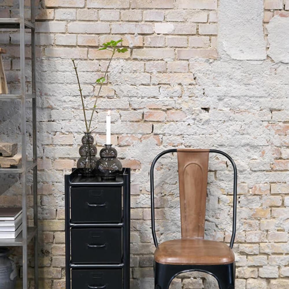 Denne flotte Living spisebordsstol i antik sort med højt ryglæn kombinerer funktion og stil på bedste vis. Sæde og ryg er betrukket med brun læder i en fin varm nuance, der skaber en flot kontrast til det sorte metalstel. Stolen giver liv til din indretning og bidrager til en hyggelig og indbydende stemning. Den er ideel til både private hjem og professionelle miljøer som caféer og restauranter, hvor dens robuste materiale og stabelbare funktion gør den praktisk og fleksibel. Brug den alene eller skab et spændende udtryk ved at kombinere den med andre stole. Perfekt til dig, der ønsker et råt og stilfuldt element, der samtidig giver rummet et personligt præg.