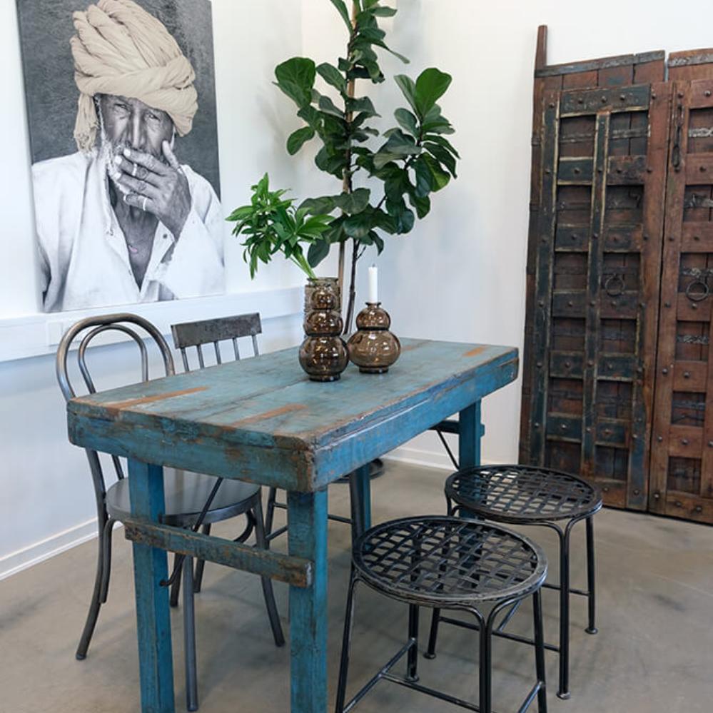 Spisebordsstol i jern med bløde runde former, der vil være med til at skabe et moderne og hyggeligt miljø. Spisebordsstolen passer perfekt omkring det lille runde bord eller et af vores gamle træborde. Hvis du ønsker ektra komfort kan du med fordel bestille en løs hynde i brunt læder. Du finder den her på shoppen - vare nummer M1407.