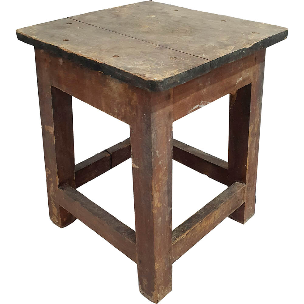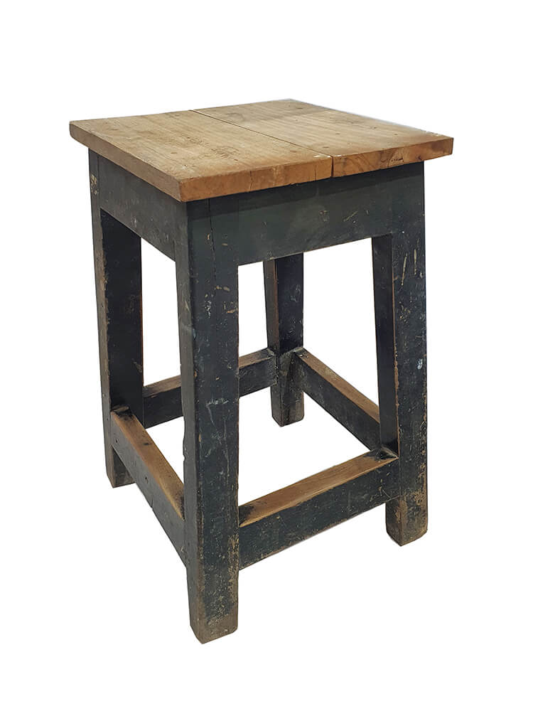 Disse gamle træskamler er udført i massivt træ og har alle tydelige spor efter mange års brug. Slidte overflader, mærker, ujævnheder og variationer i både farve og patina. Nogle har rester af gammel maling, andre står mere rå i træet, hvilket giver et levende og autentisk udtryk. Der kan være forskel på både højde, bredde og proportioner, og netop denne forskellighed er en del af charmen. Hver skammel har sit eget særpræg og sin egen historie. Skamlerne kan bruges til mange formål: som ekstra siddeplads, små side- eller planteborde, natborde eller som stemningsskabende elementer i butik, café eller boligindretning. De fungerer både enkeltvis og samlet, hvor variationen fremhæver det rå og originale udtryk. Et karakterfuldt parti for dig, der sætter pris på ægte materialer, brugsspor og møbler med historie.