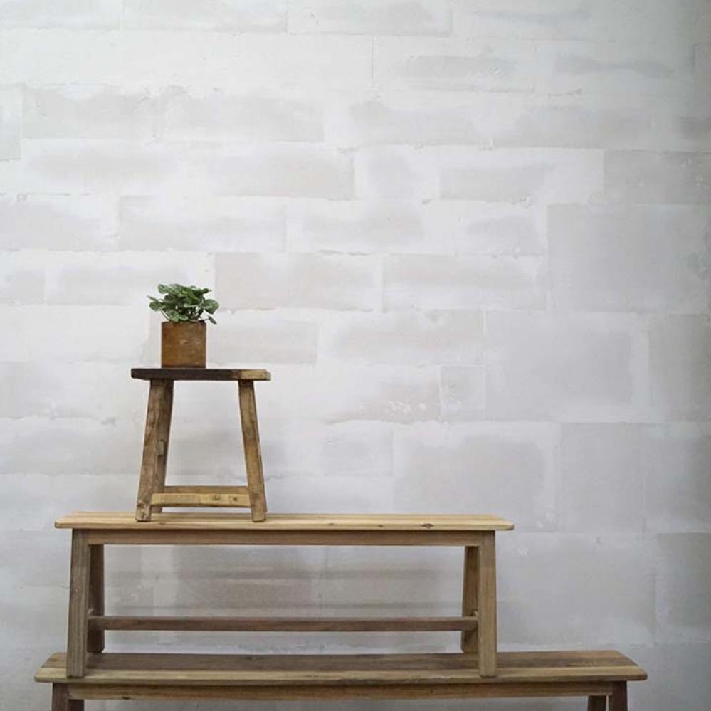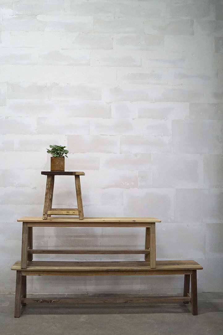 Denne enkle og rå skammel er fremstillet af lyst genanvendt træ, hvilket gør hver skammel helt speciel med sin egen struktur og patina. Perfekt til dig, der ønsker et naturligt og nordisk look i din indretning. Brug skamlen som en praktisk siddeplads ved middagsbordet, som et dekorativt element i entreen, eller som et funktionelt møbel i butikken. Dens minimalistiske udseende og materiale gør den til et tidløst valg til ethvert rum.