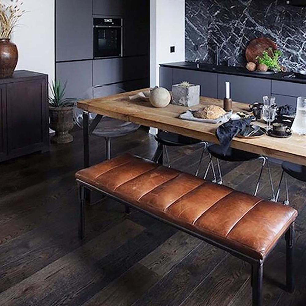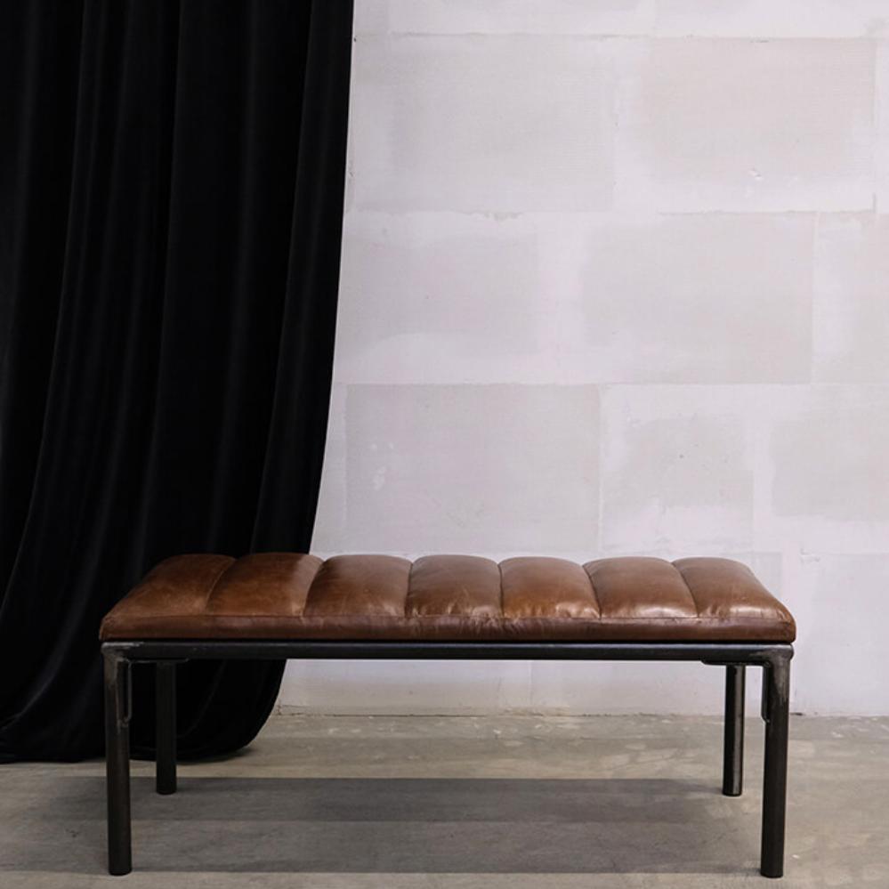 Sean bænken kombinerer stilfuldt design med praktisk anvendelighed. Den brune læderpolstring bidrager til en komfortabel siddeoplevelse, mens de mørke jernben tilføjer et industrielt flair. Bænken passer ind i mange forskellige indretningsstile og kan hurtigt skabe et par ekstra siddepladser, eller bruges som bænk i entréen.