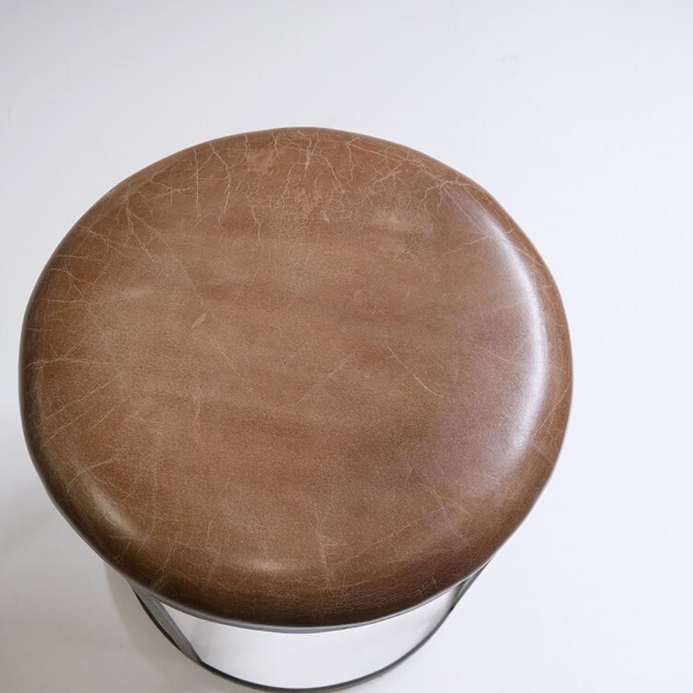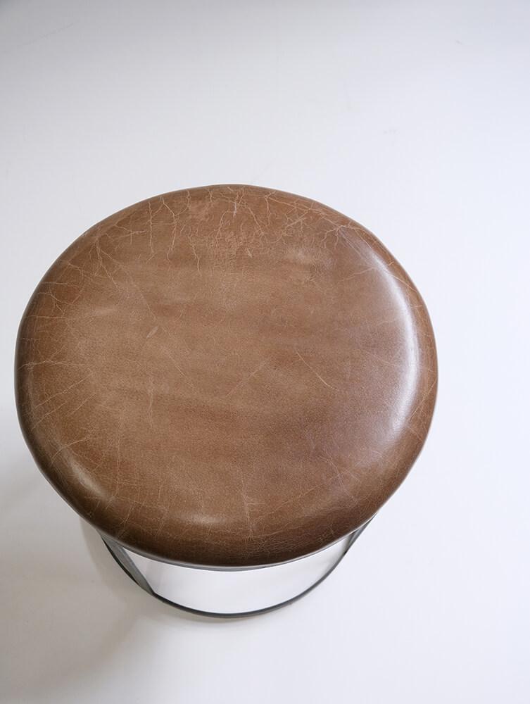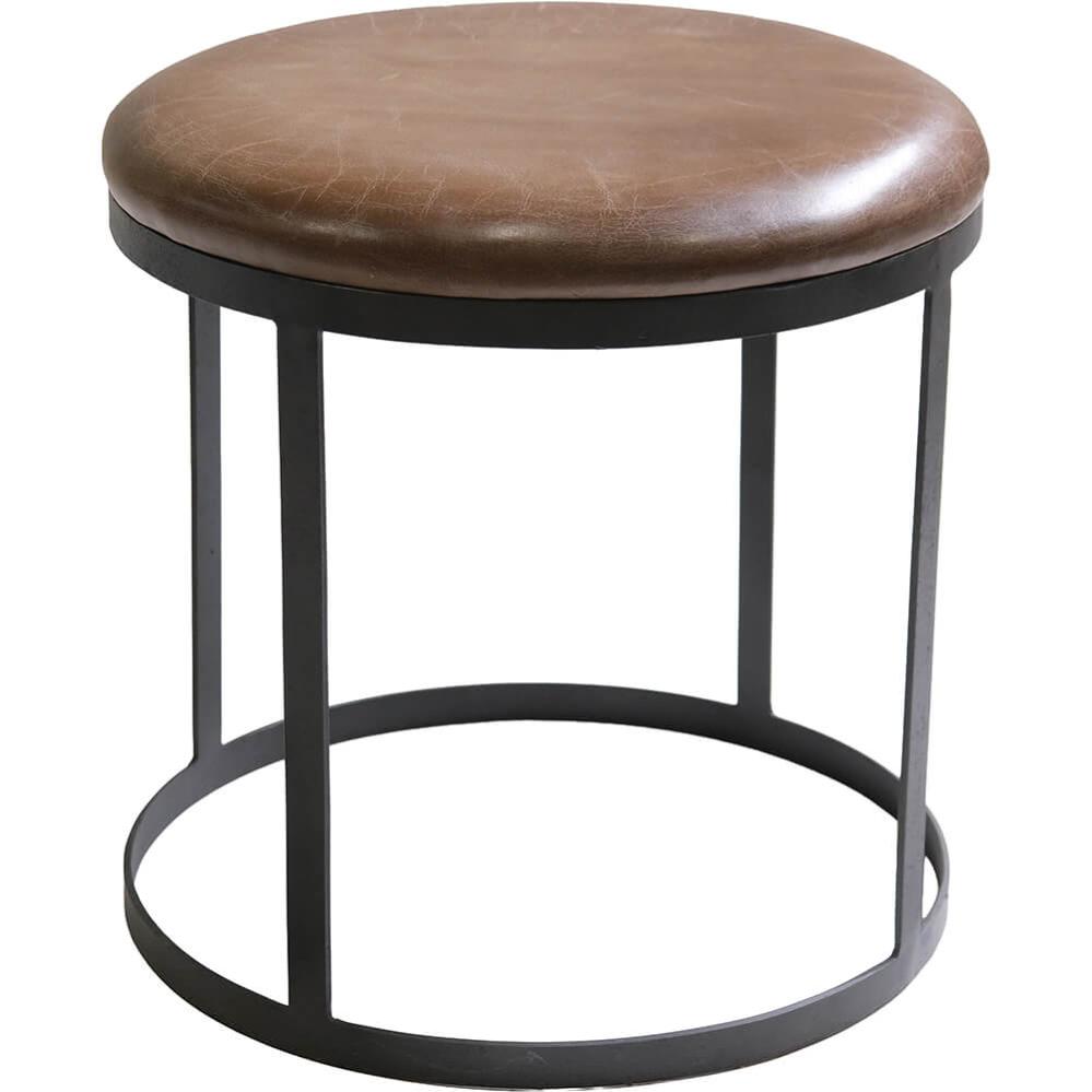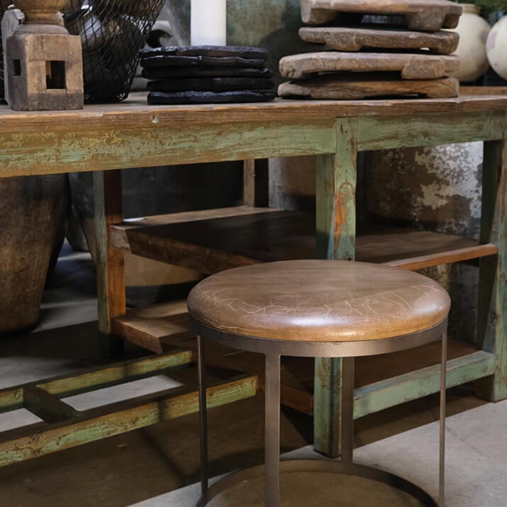 Denne jernskammel med rundt lædersæde er en perfekt kombination af det rå og funktionelle. Det robuste jernstel giver skamlen en industriel charme, mens det bløde, polstrede lædersæde tilføjer komfort og varme. Læderets naturlige patina skaber et autentisk og tidløst udtryk, der passer godt ind i både moderne og rustikke omgivelser. Ideel som ekstra siddeplads, en dekorativ detalje i stuen, gangen eller køkkenet. En alsidig skammel, der både er praktisk og cool.