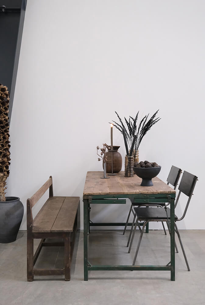 Enkelt udtryk, ærlige materialer og masser af historie. Denne gamle træbænk har et charmerende, slidt look og et lavt ryglæn, der giver den en let og uhøjtidelig fremtoning. Den er solidt bygget og vidner om funktionalitet fra en tid, hvor tingene blev lavet til at holde. Perfekt i entréen, som ekstra siddeplads ved spisebordet eller som blikfang i butikken. Bænken indbyder til at tage en pause, snøre skoene eller bare nyde et øjebliks ro. Et møbel med karakter, der passer ind, uden at råbe op.