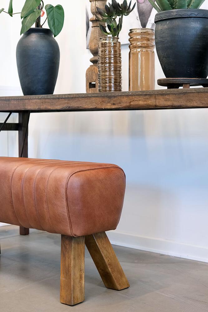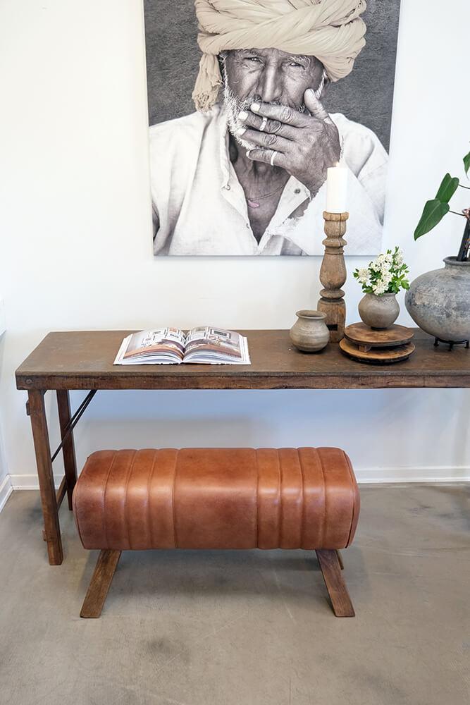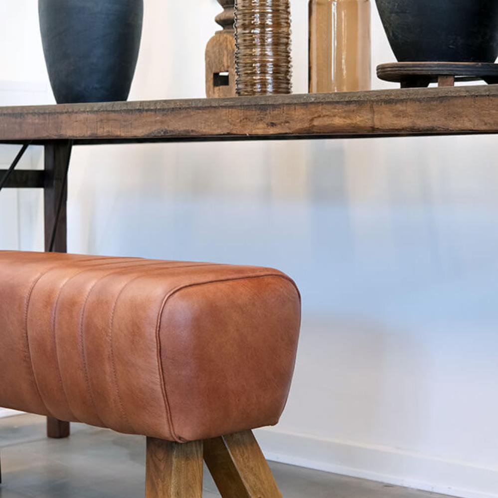 Superflot og enkel buk i quiltet læder. Puffen har et lækkert vintagelook med flot cognacfarvet læder, som giver en varm følelse til rummet. De solide træben sikrer, at puffen er robust og holdbar – perfekt til hverdagsbrug. Det quiltede design tilføjer et klassisk og tidløst udtryk, der passer ind i både moderne og rustikke indretninger. Perfekt i entreen som en praktisk siddeplads, ved fodenden af sengen som et stilfuldt supplement, eller som en dekorativ og funktionel detalje i din restaurant eller butik. Mulighederne er mange med denne skønne og alsidige buk.